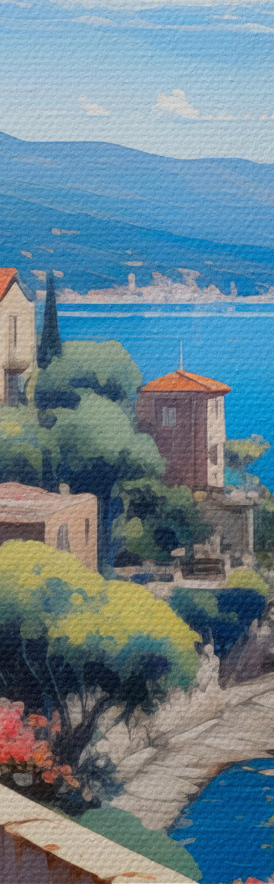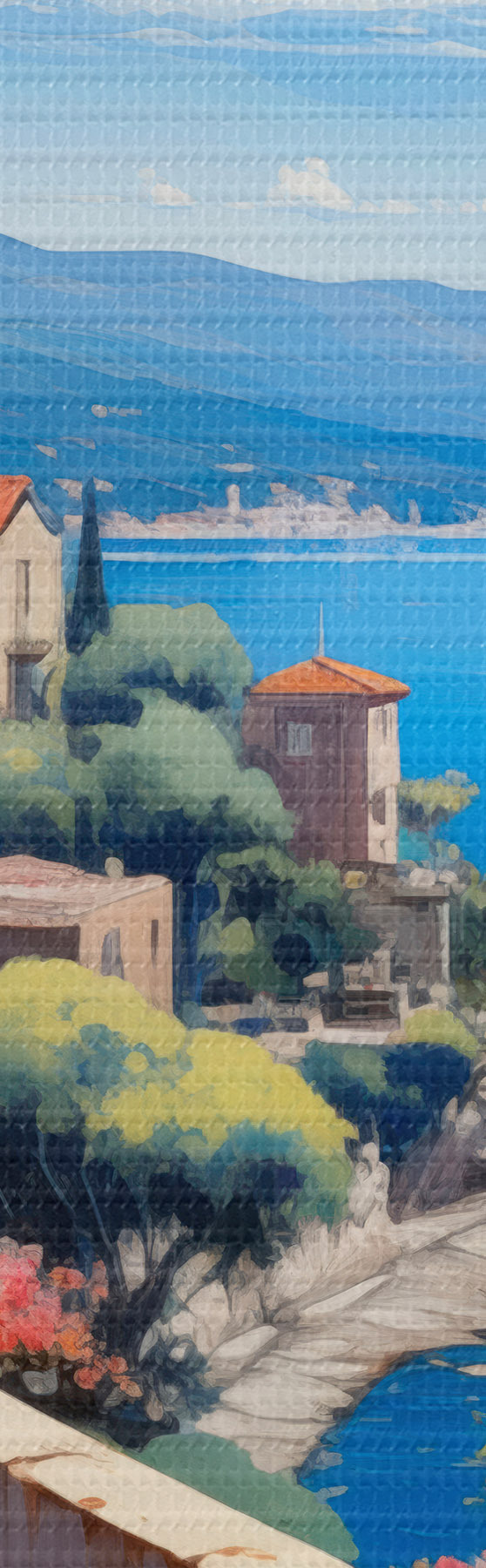 Tableau Paysage méditerranéen avec terrasse fleurie dans un style artistique s45053