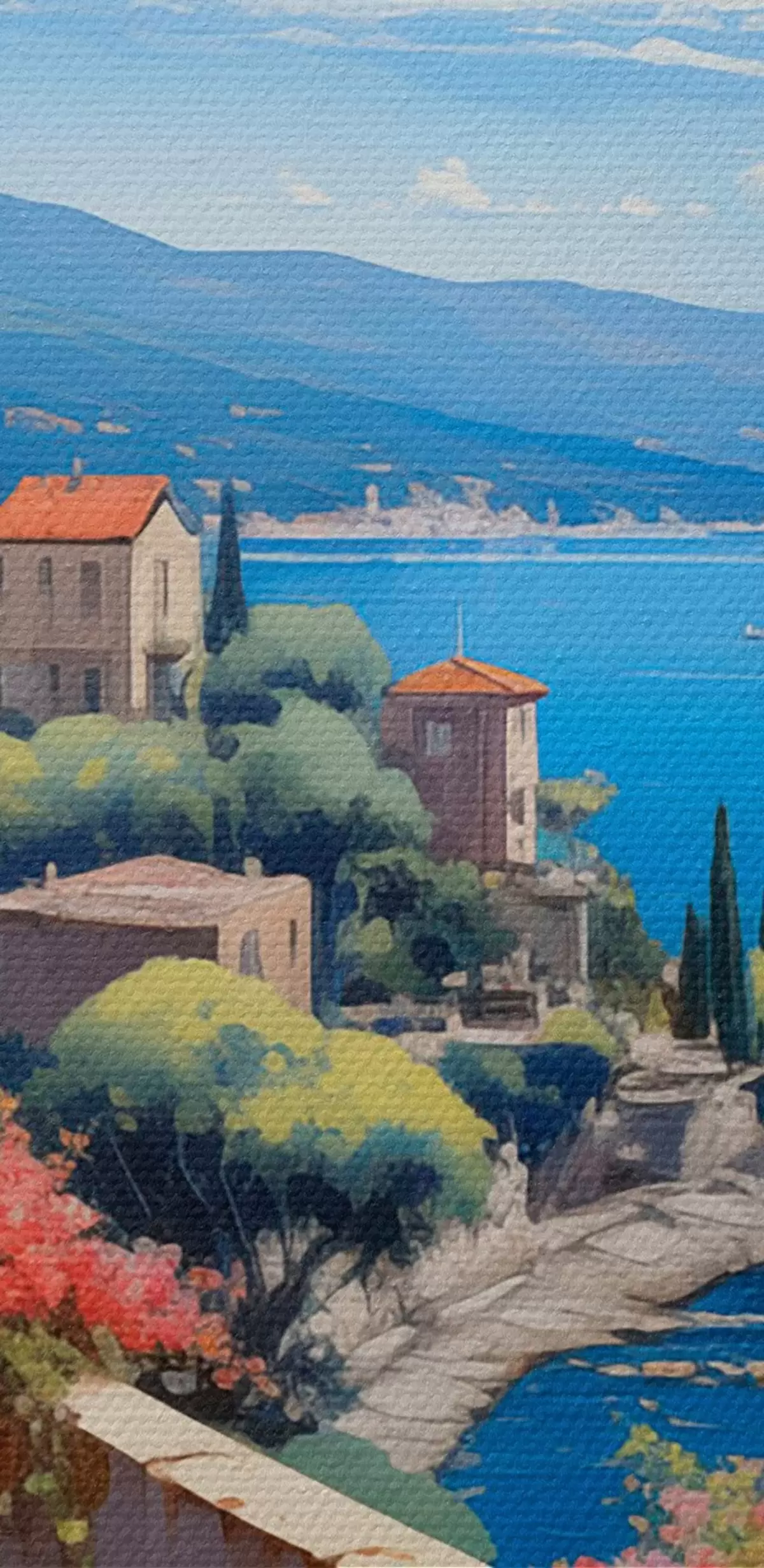 Tableau Paysage méditerranéen avec terrasse fleurie dans un style artistique s45053