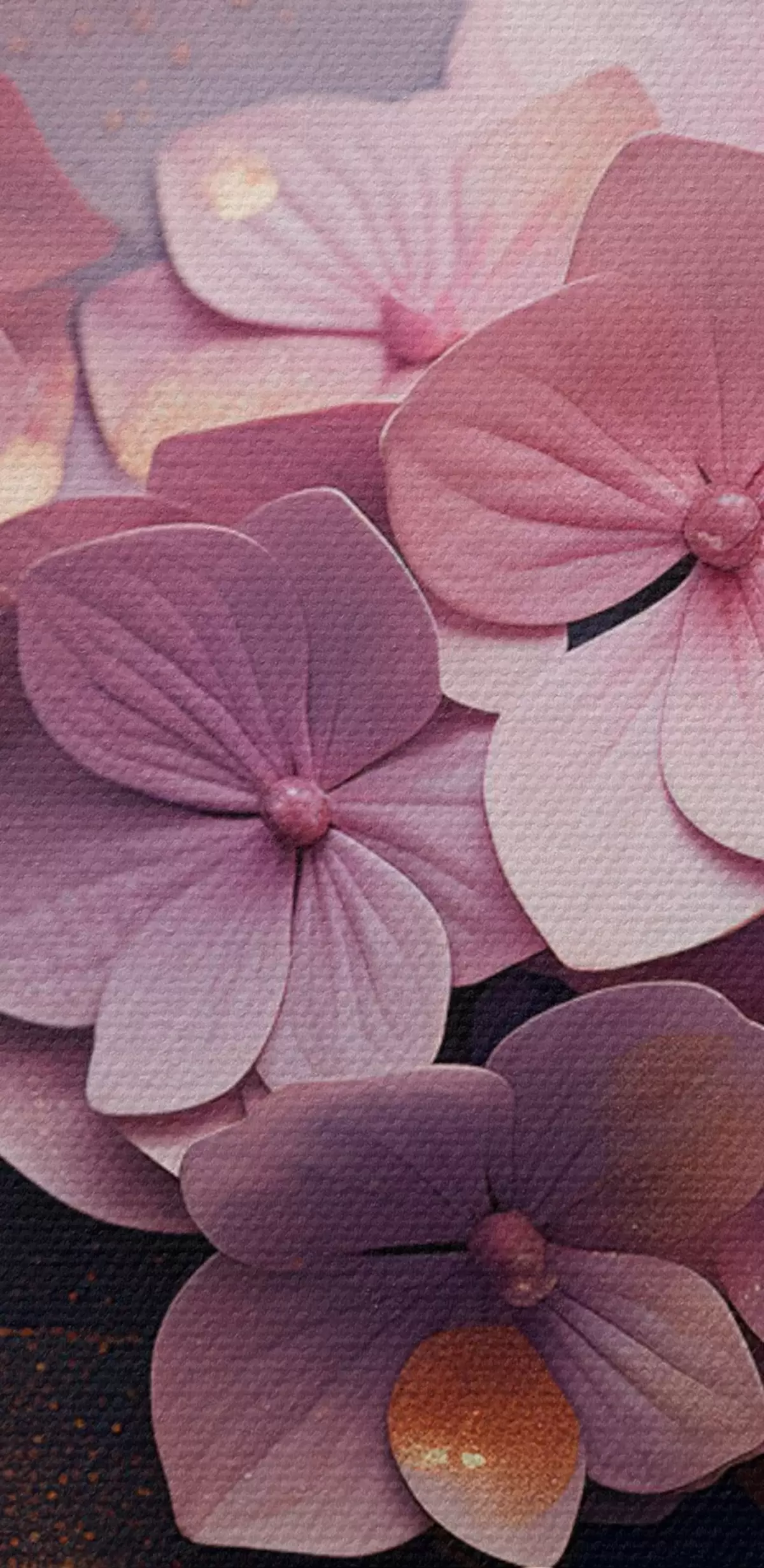 Tableau Hortensias roses luxuriants sur un fond sombre dans un style pictural s45054