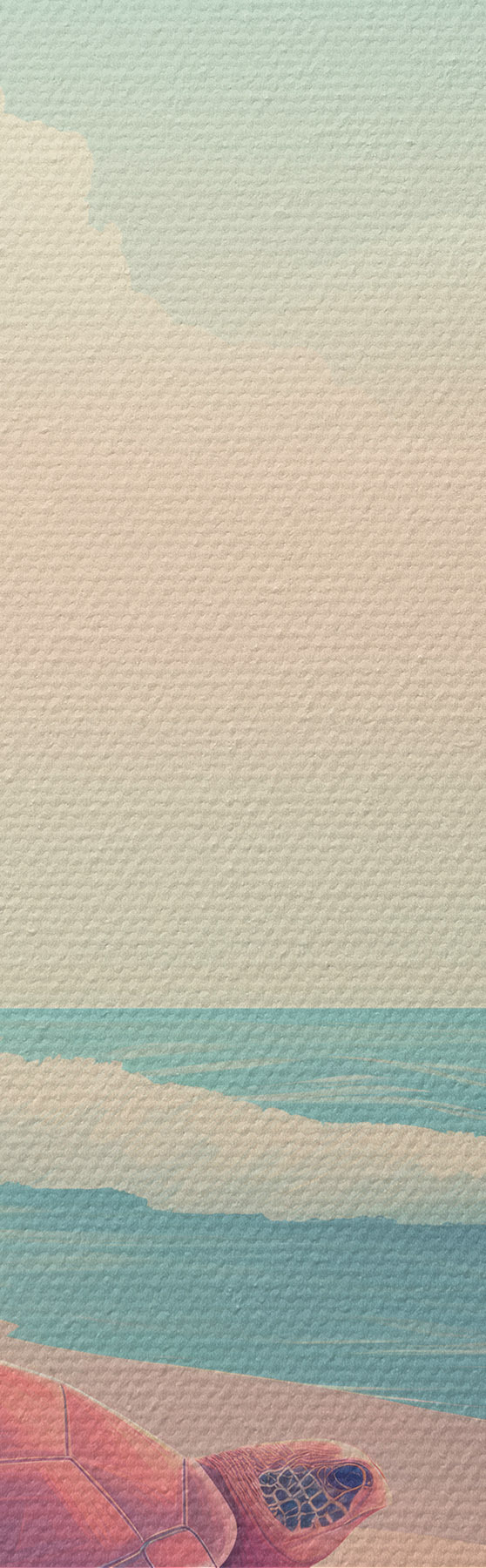 Tableau Tortue de mer sur une plage rose : paysage minimaliste s45059