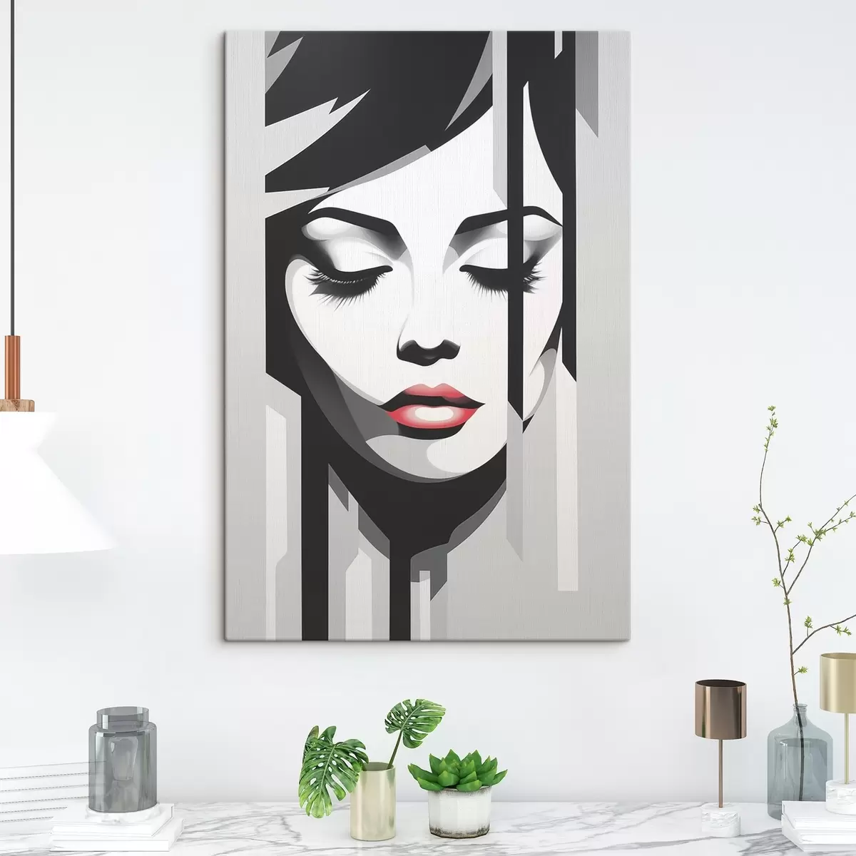 Tableau Visage noir et blanc aux yeux fermés s45076