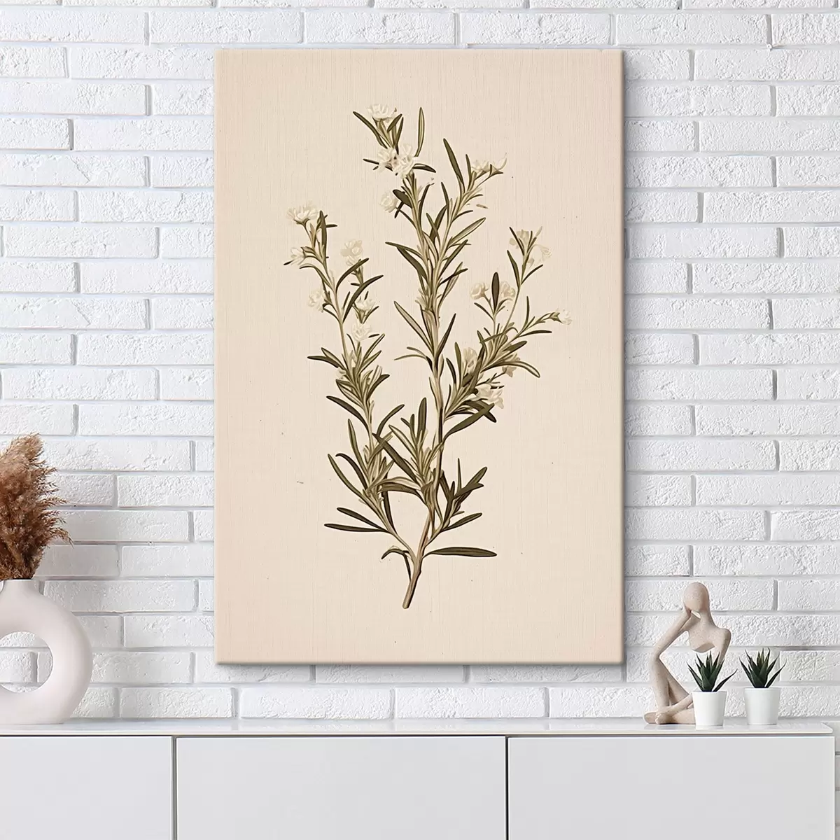 Tableau botanique, branche, fond beige, herbe, minimal, plante, feuilles vertes, tige Nr s45098