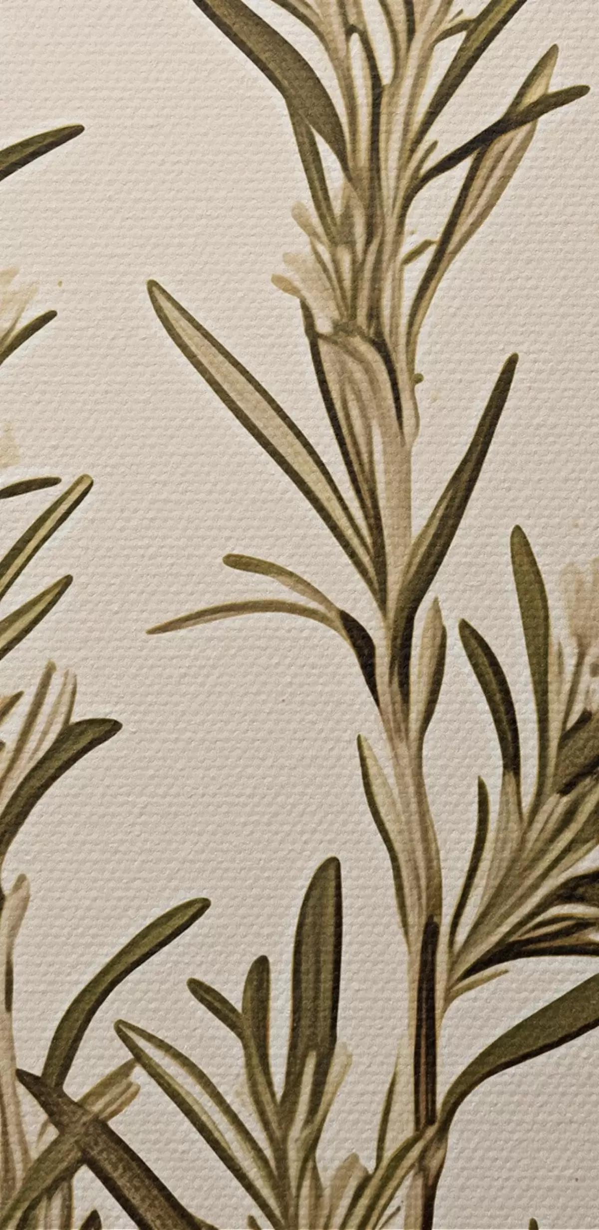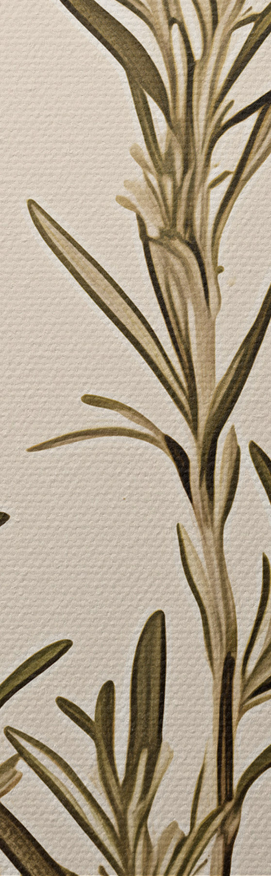 Tableau botanique, branche, fond beige, herbe, minimal, plante, feuilles vertes, tige s45098