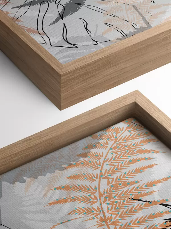 Tableau fougère, feuilles abstraites, motif, design plat, contraste, tons gris, botanique, superposition Nr s45101