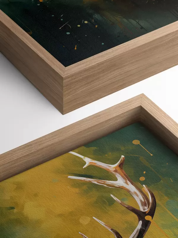 Tableau cerf, bois, vert forêt, éclaboussures d'orange, portrait d'animal, gouttes de peinture, audacieux, animaux sauvages s45111