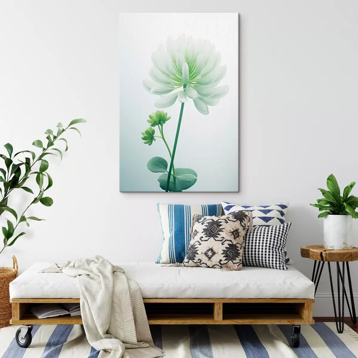 Tableau Fleur de trèfle blanc avec tige et feuilles vertes, éclairage doux, arrière-plan propre, composition minimaliste, botanique Nr s45171