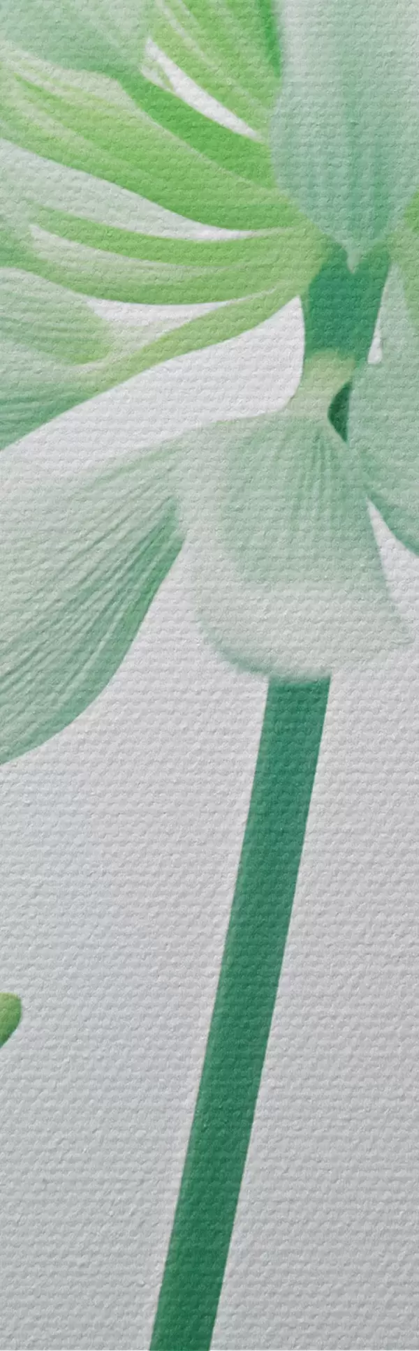 Trois types de matériaux peuvent être commandés : Economic Canvas - matériau dense et durable pour l'impression numérique, identique à la toile de peintre, surface imperméable, reproduction réaliste des détails, matériau à grain moyen. Premium Canvas - la texture ressemble à celle d'une toile de peintre (petits fils entrelacés). Reproduction douce et détaillée de l'image sur une surface mate. Eco-Premium - tissu 100 % coton de haute qualité. Grâce aux fibres naturelles de coton, le matériau est durable et résistant à l'usure. Excellente reproduction des couleurs et des détails.
