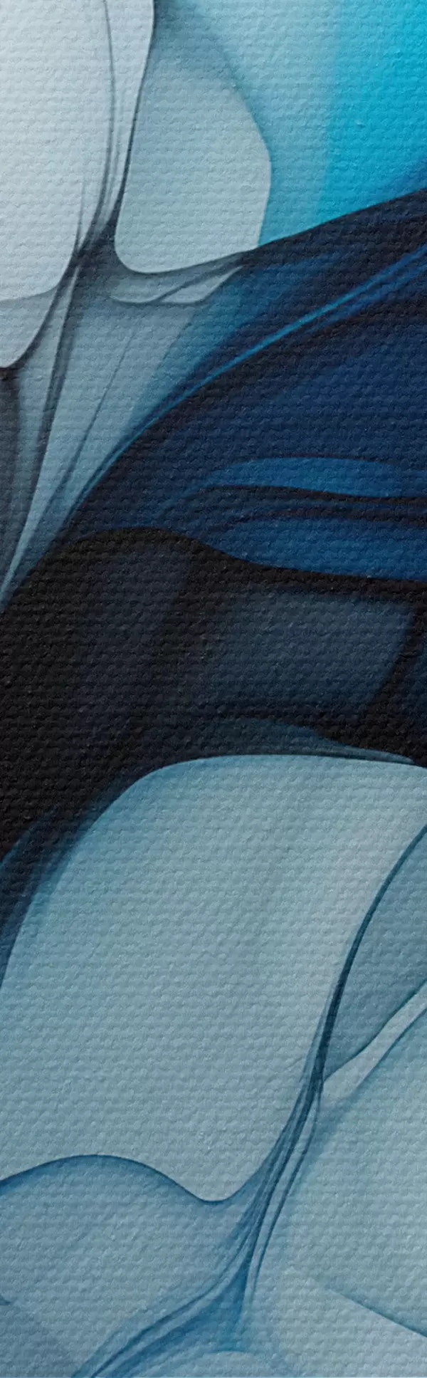 Tableau Composition abstraite avec des lignes fluides et des pétales translucides dans les tons bleu blanc et beige, imitation encre à l'alcool s45178