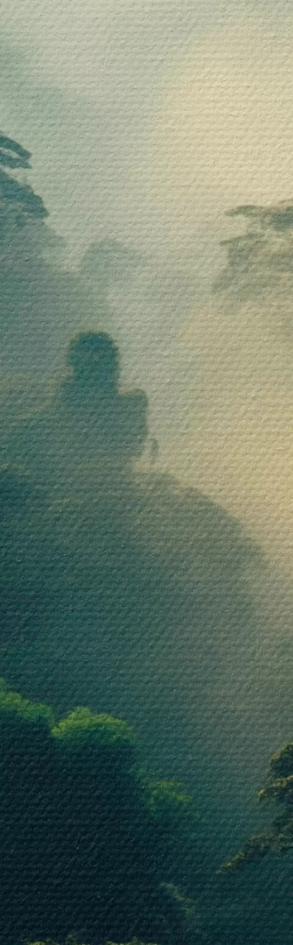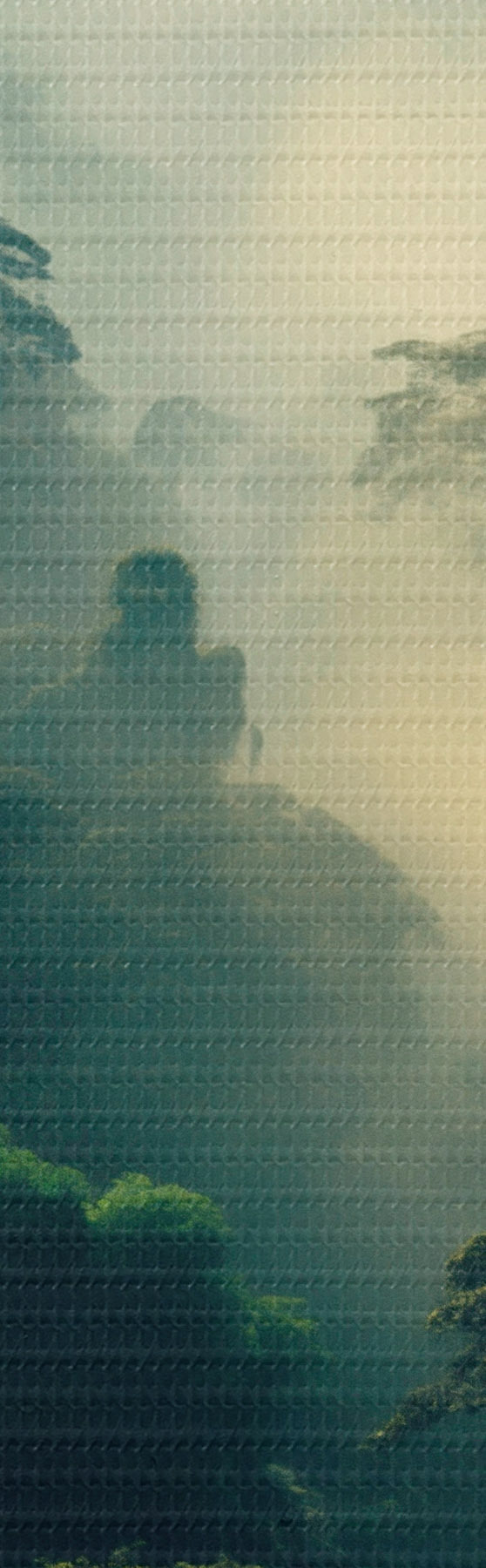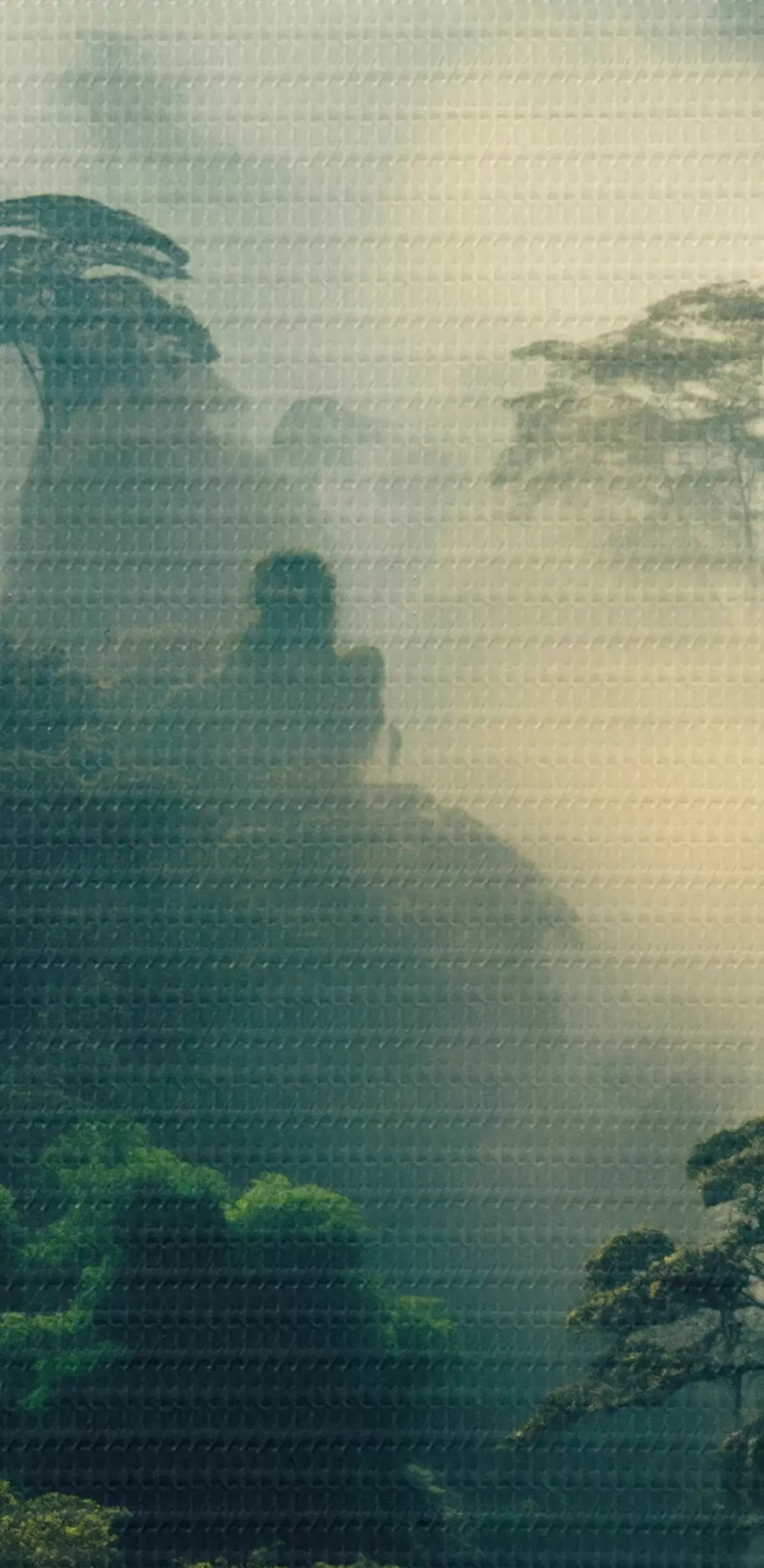 Tableau Forêt tropicale avec des arbres verdoyants et une épaisse couche de brume, créant un environnement atmosphérique s45190