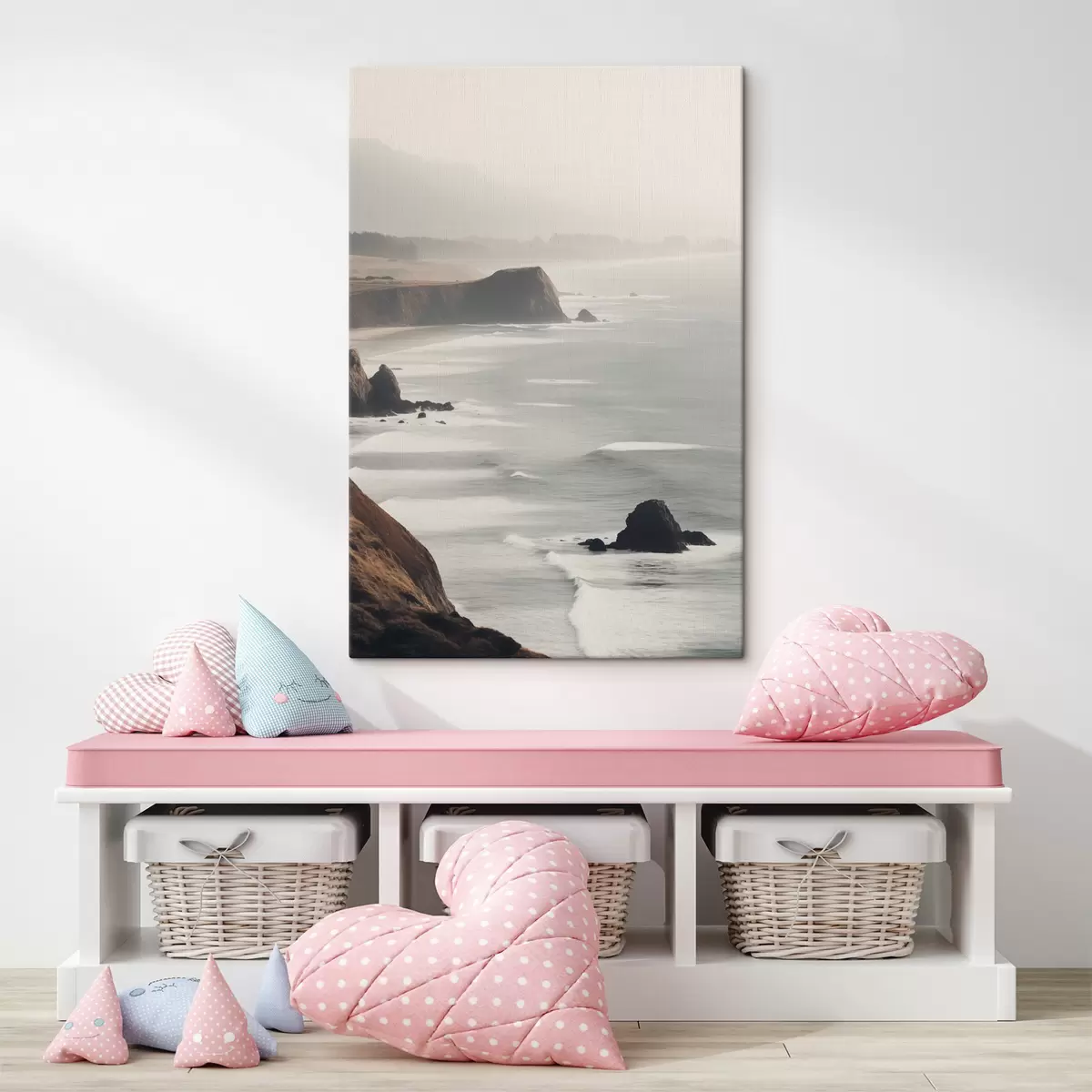 Tableau Falaises rocheuses et côte maritime, vagues s'écrasant sur le rivage, paysage à l'atmosphère lunatique, tons terreux s45194