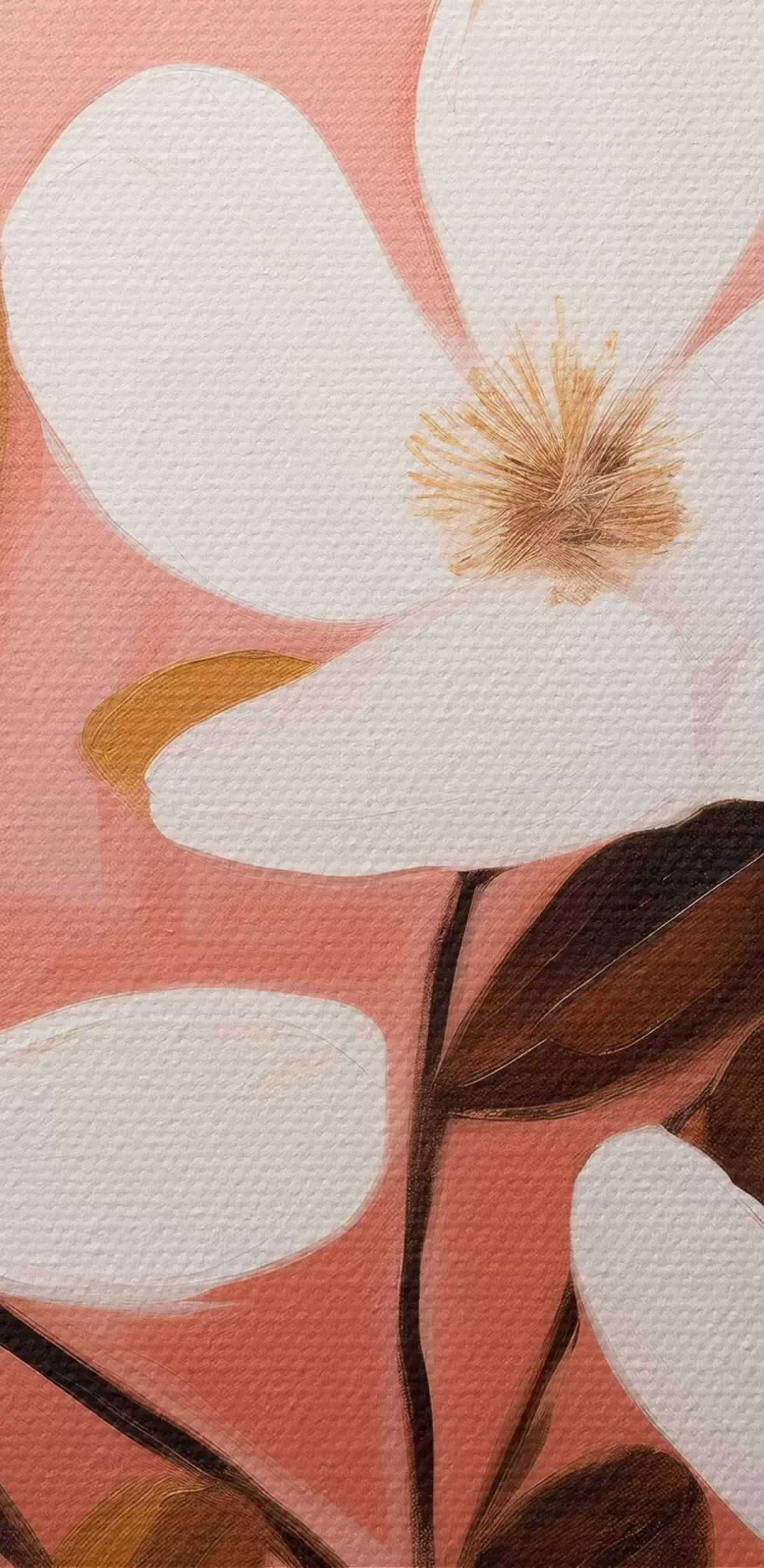Tableau Magnolias blancs dans un vase blanc : peinture florale minimaliste s45254