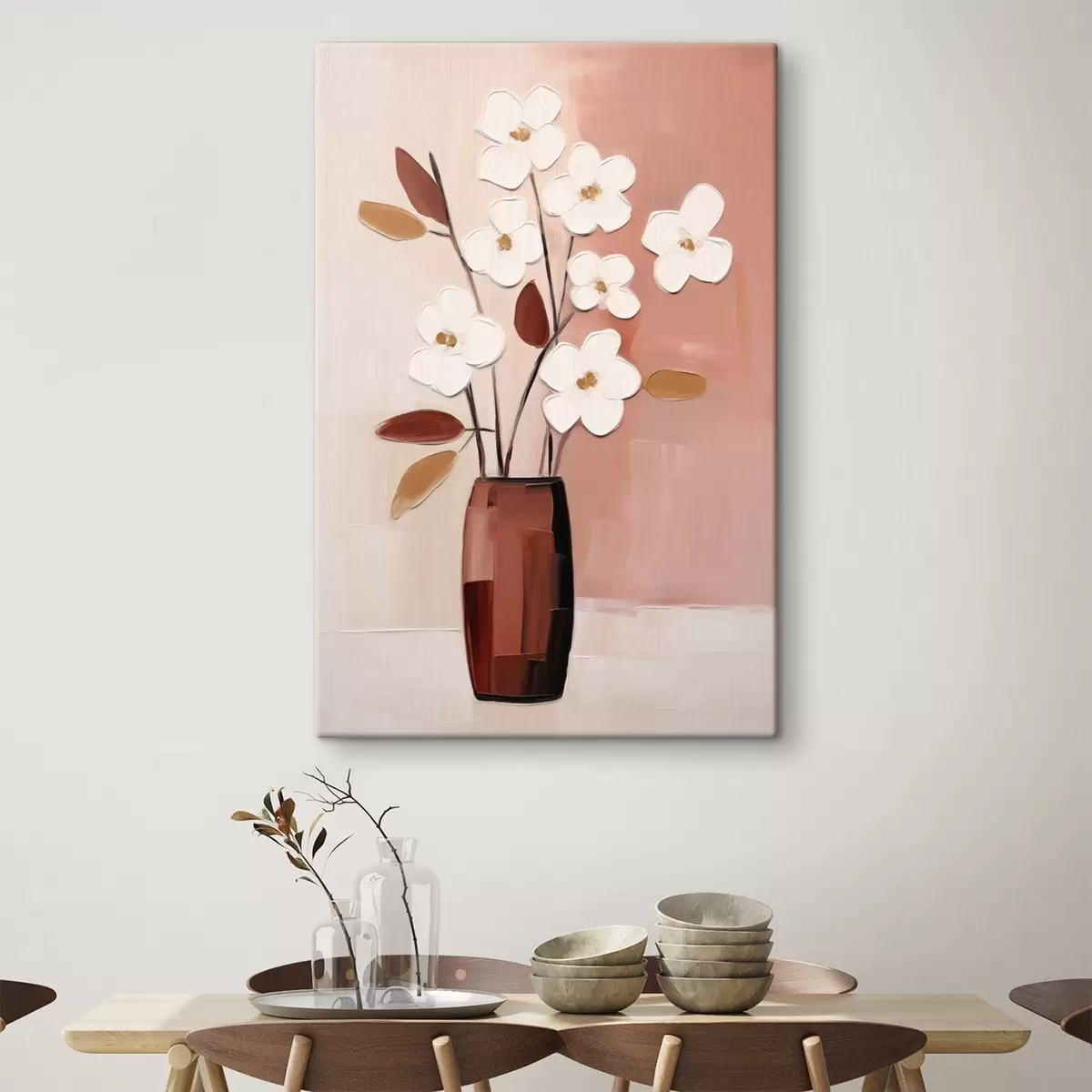 Tableau Fleurs blanches dans un vase sombre : peinture florale moderne s45255