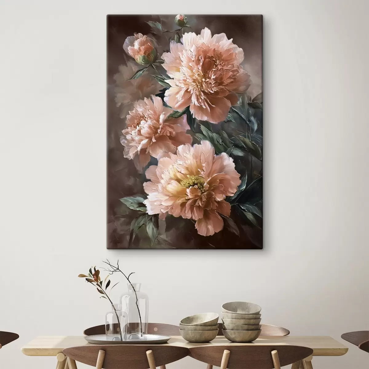 Tableau Pivoines roses luxuriantes sur un fond aux tons chauds dans le style du coup de pinceau s45260