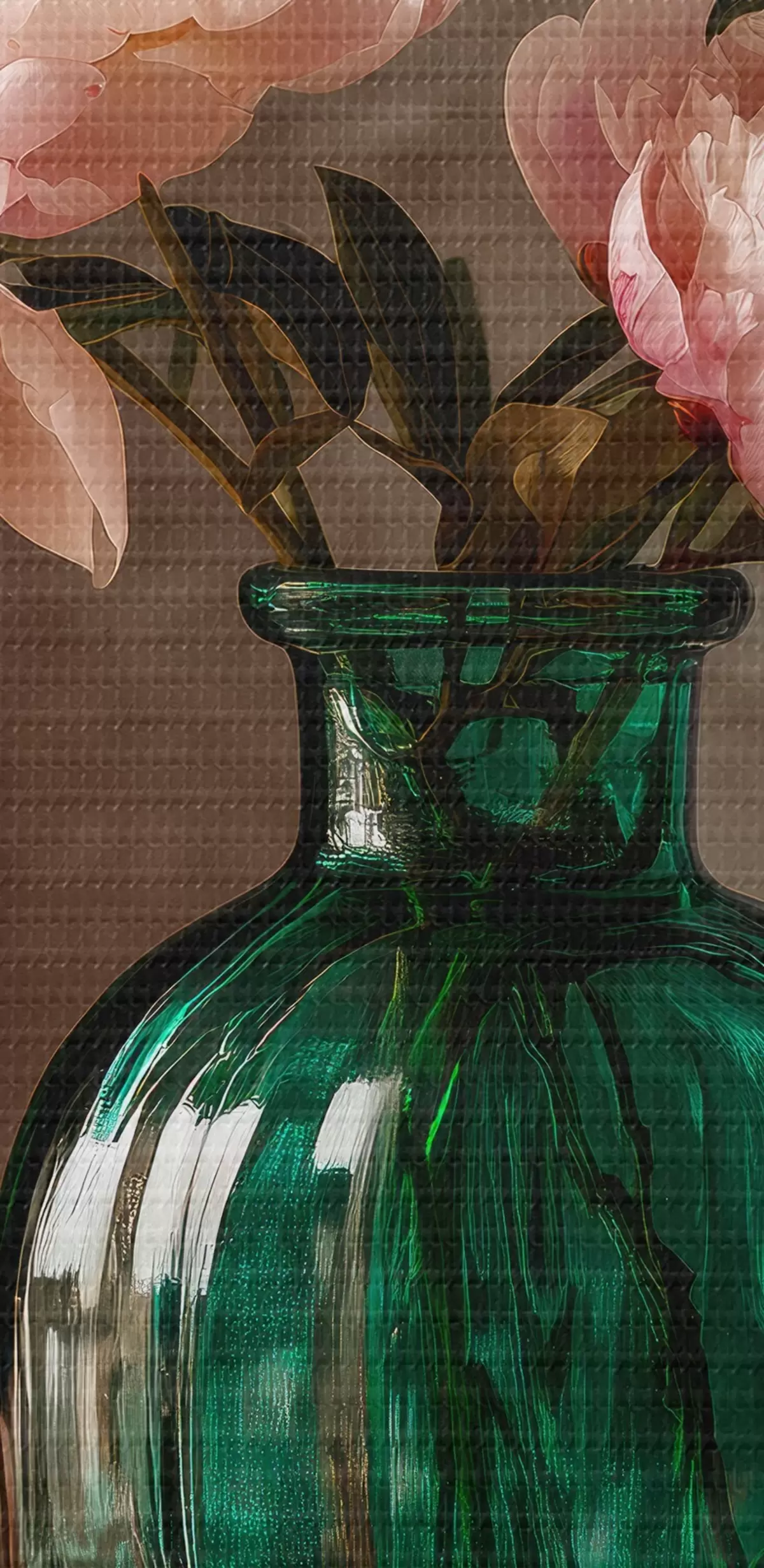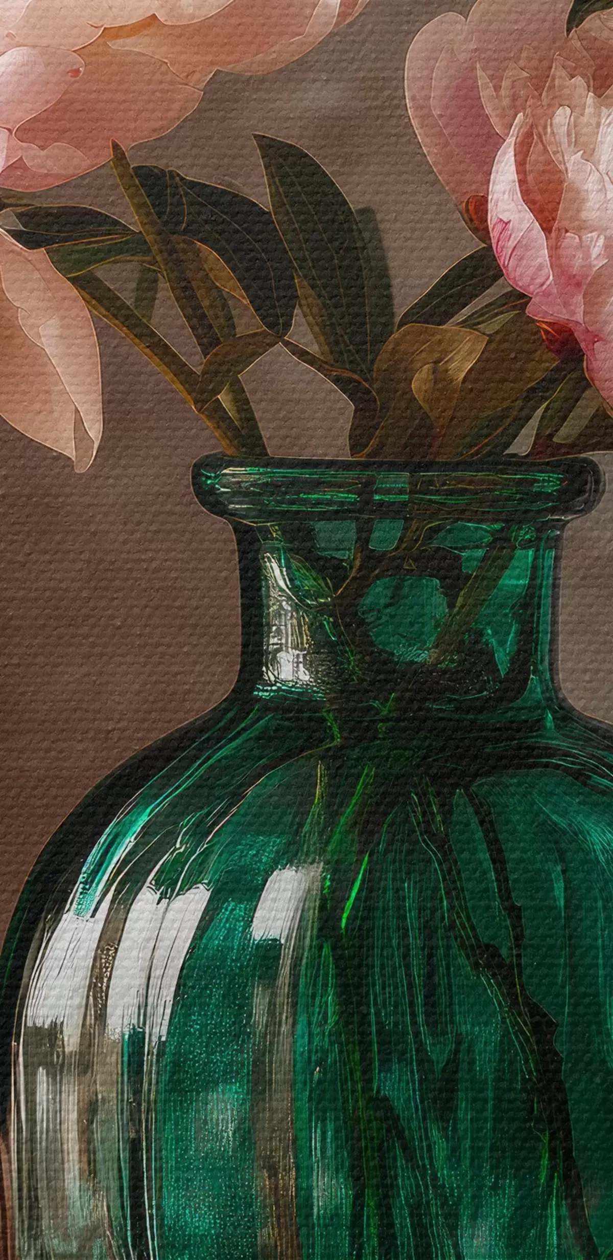 Tableau Pivoines roses délicates dans un vase émeraude Nr s45261