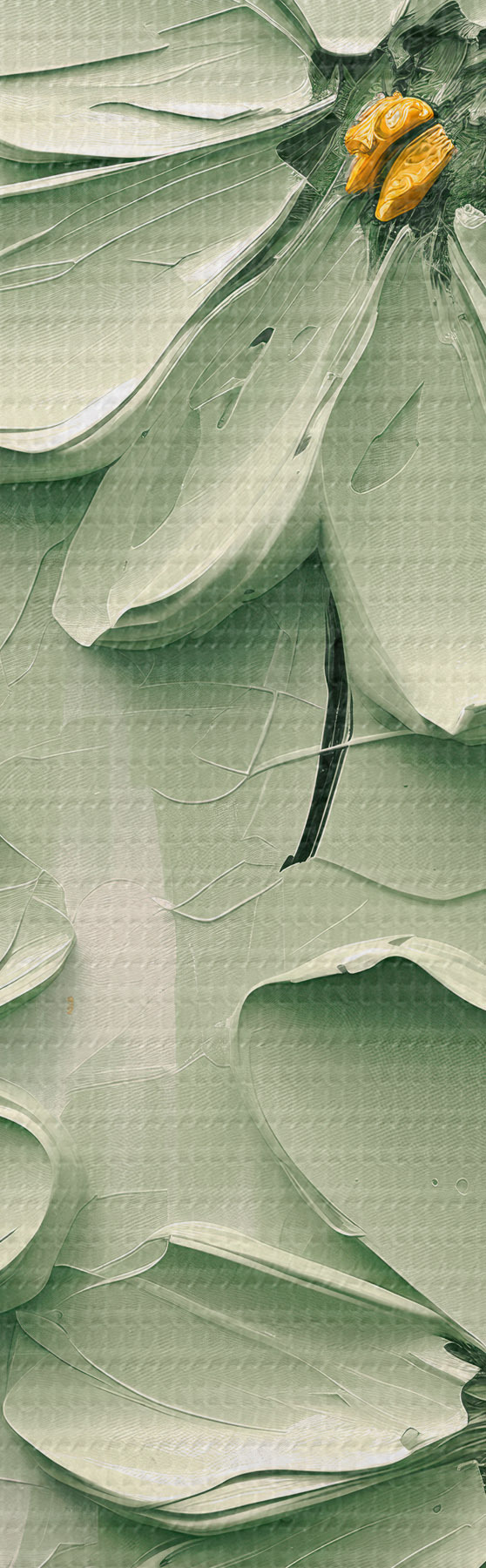 Tableau Fleurs vertes à centre jaune peintes à grands coups de pinceau sur fond clair Nr s45265