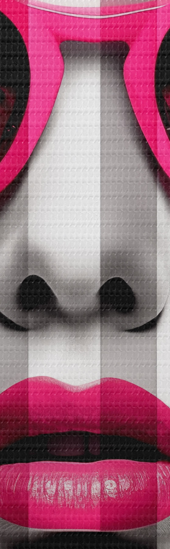 Tableau Femme portant des lunettes roses à rayures noires et blanches s45315