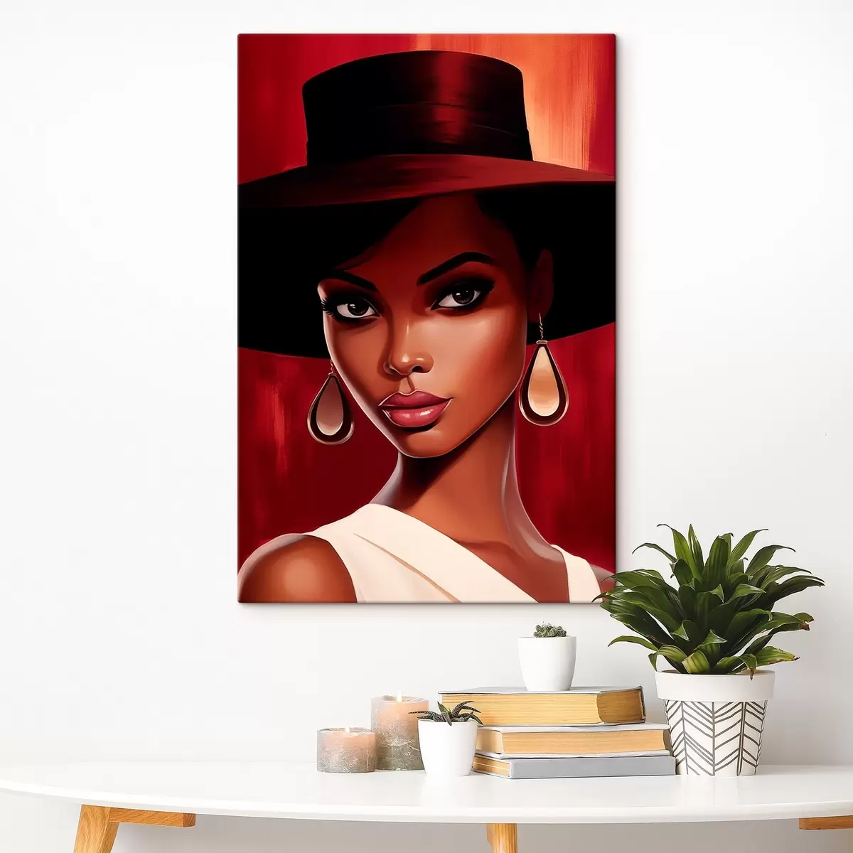 Tableau Femme avec un chapeau et des boucles d'oreilles s45322