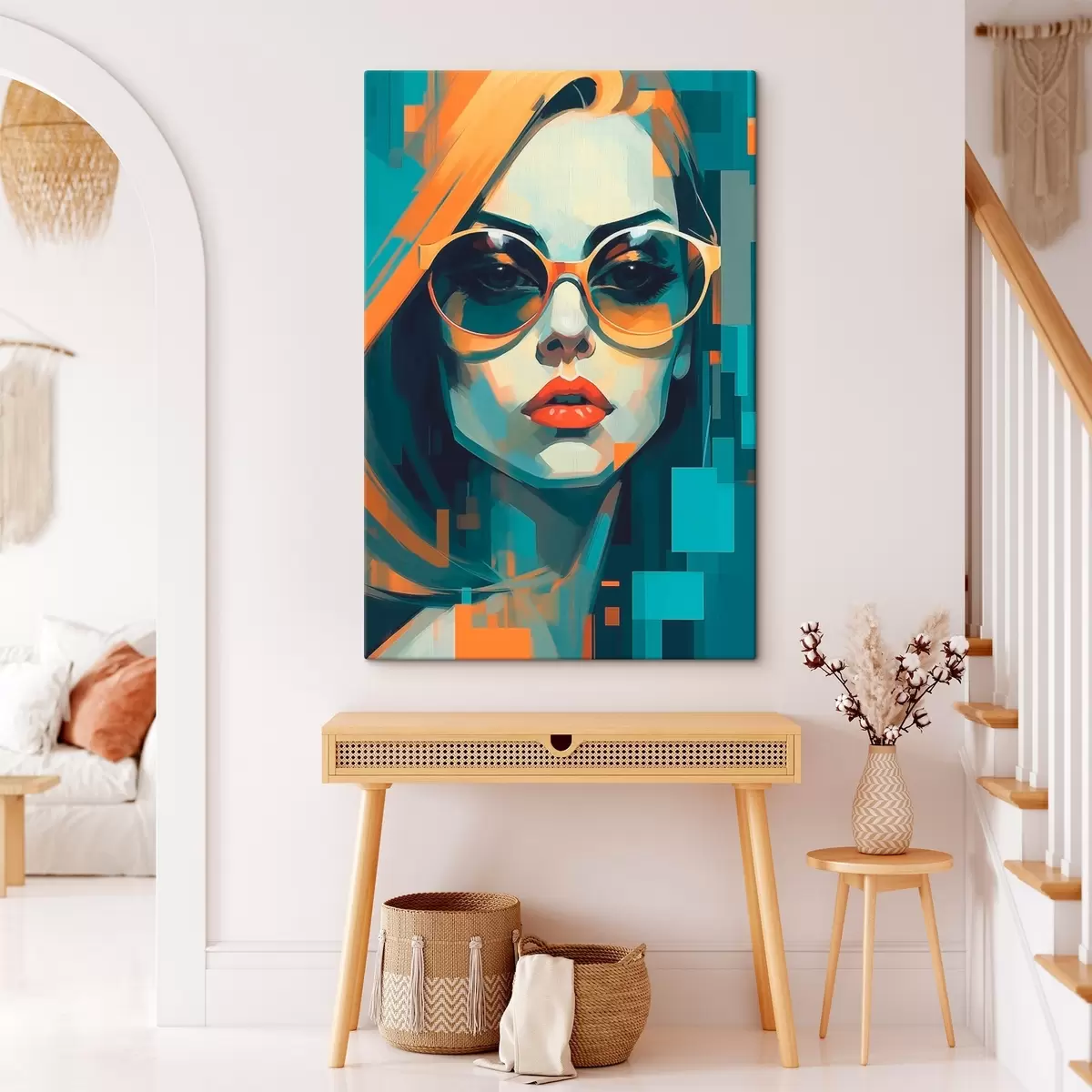 Tableau Femme portant des lunettes de soleil dans un style pop art numérique s45327