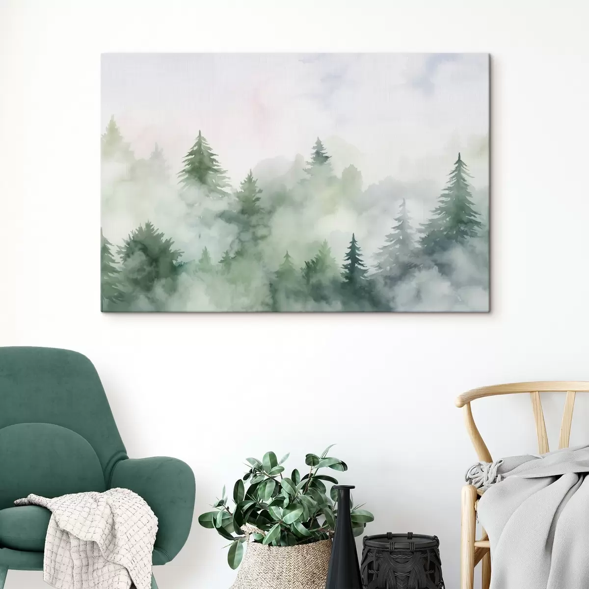 Tableau Forêt dans le brouillard imitation aquarelle s45343