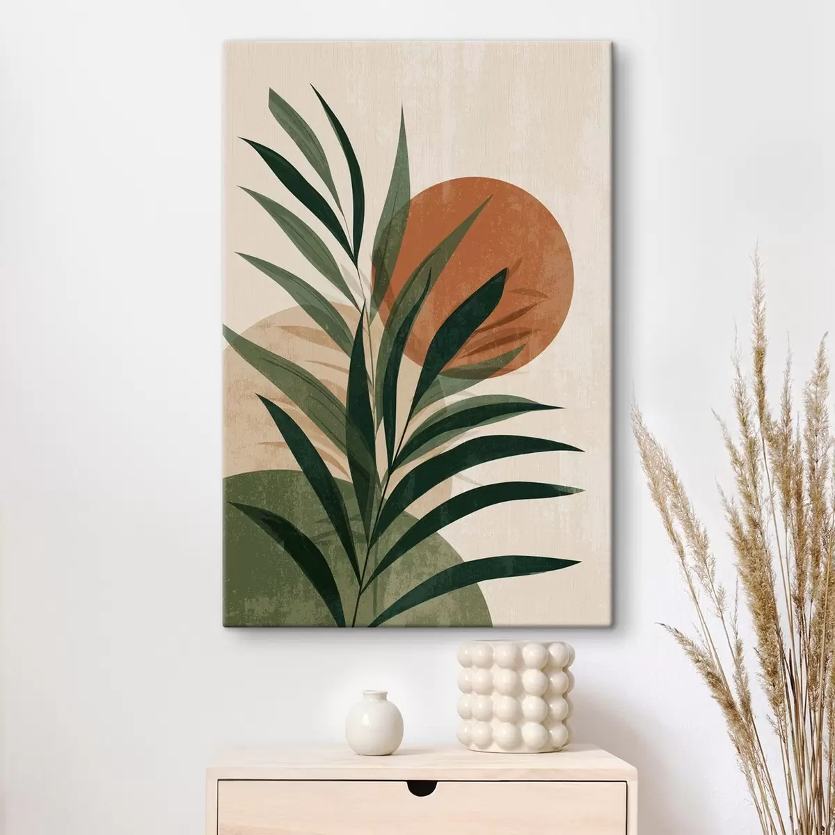 Tableau Feuilles vertes et coucher de soleil s45394