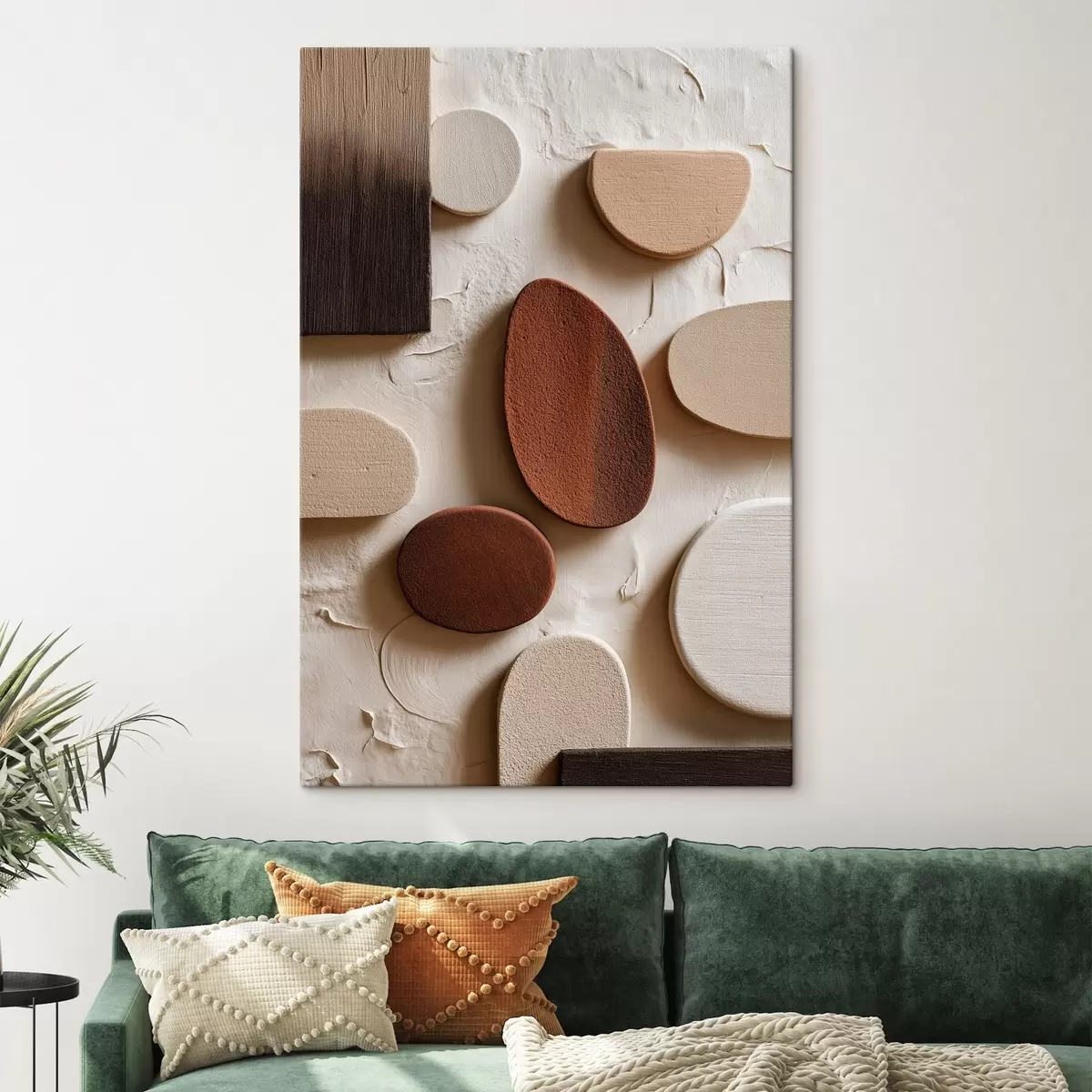 Tableau Composition abstraite avec des formes géométriques tridimensionnelles sur un fond en relief s45409