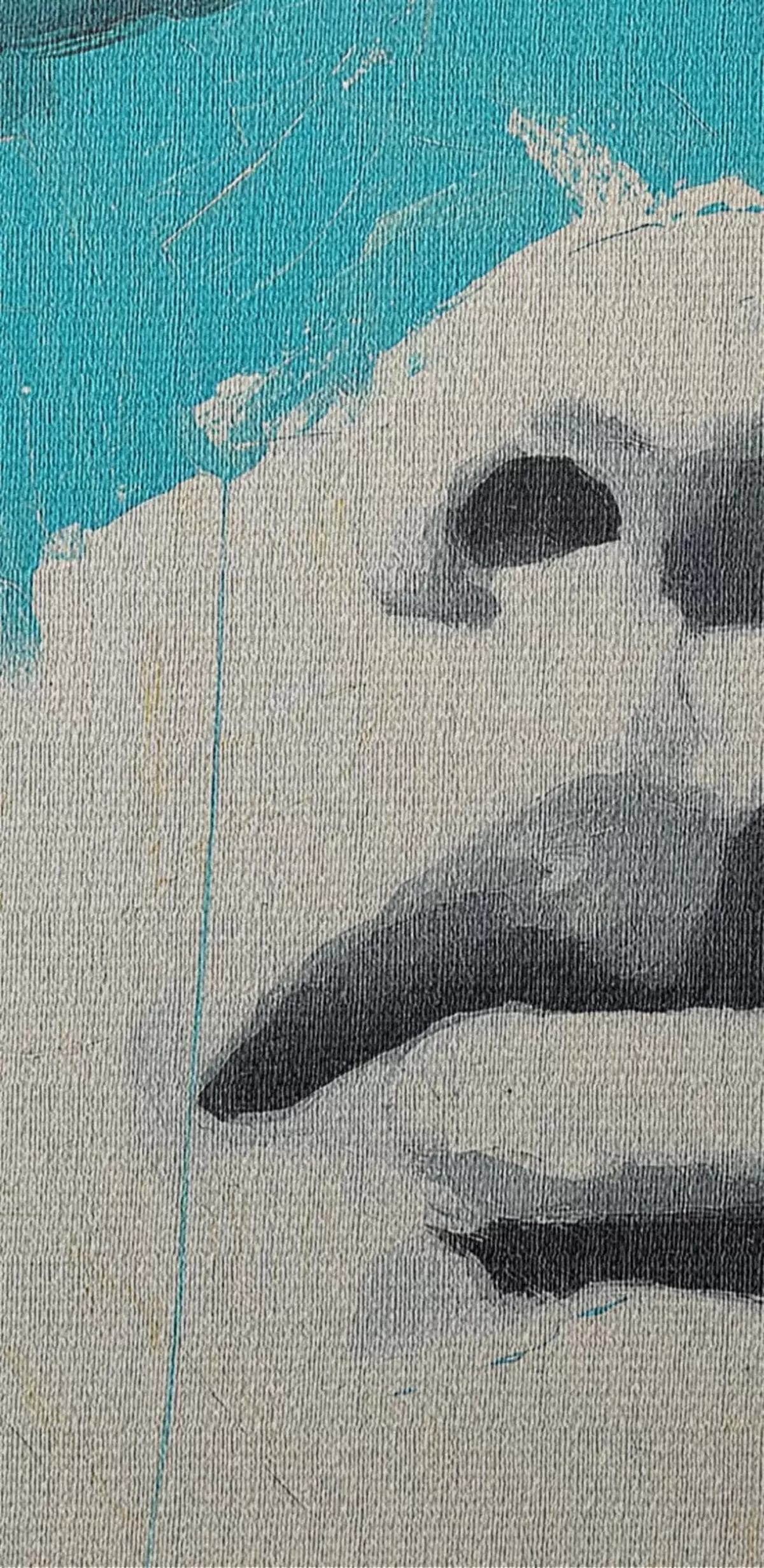 Tableau Portrait en techniques mixtes avec des fragments de touches de couleur et de textures Nr s45417