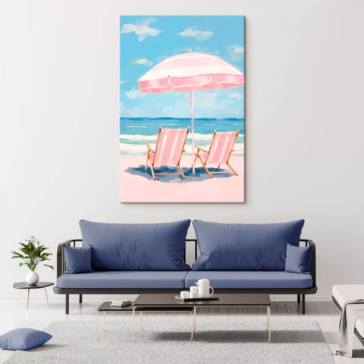 Tableau Parasol et chaises longues sur la côte Nr s45442