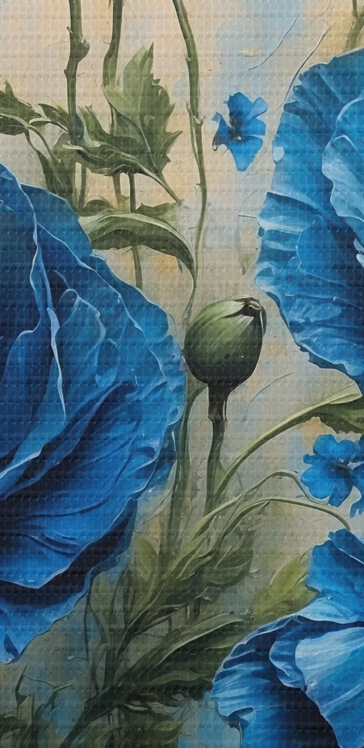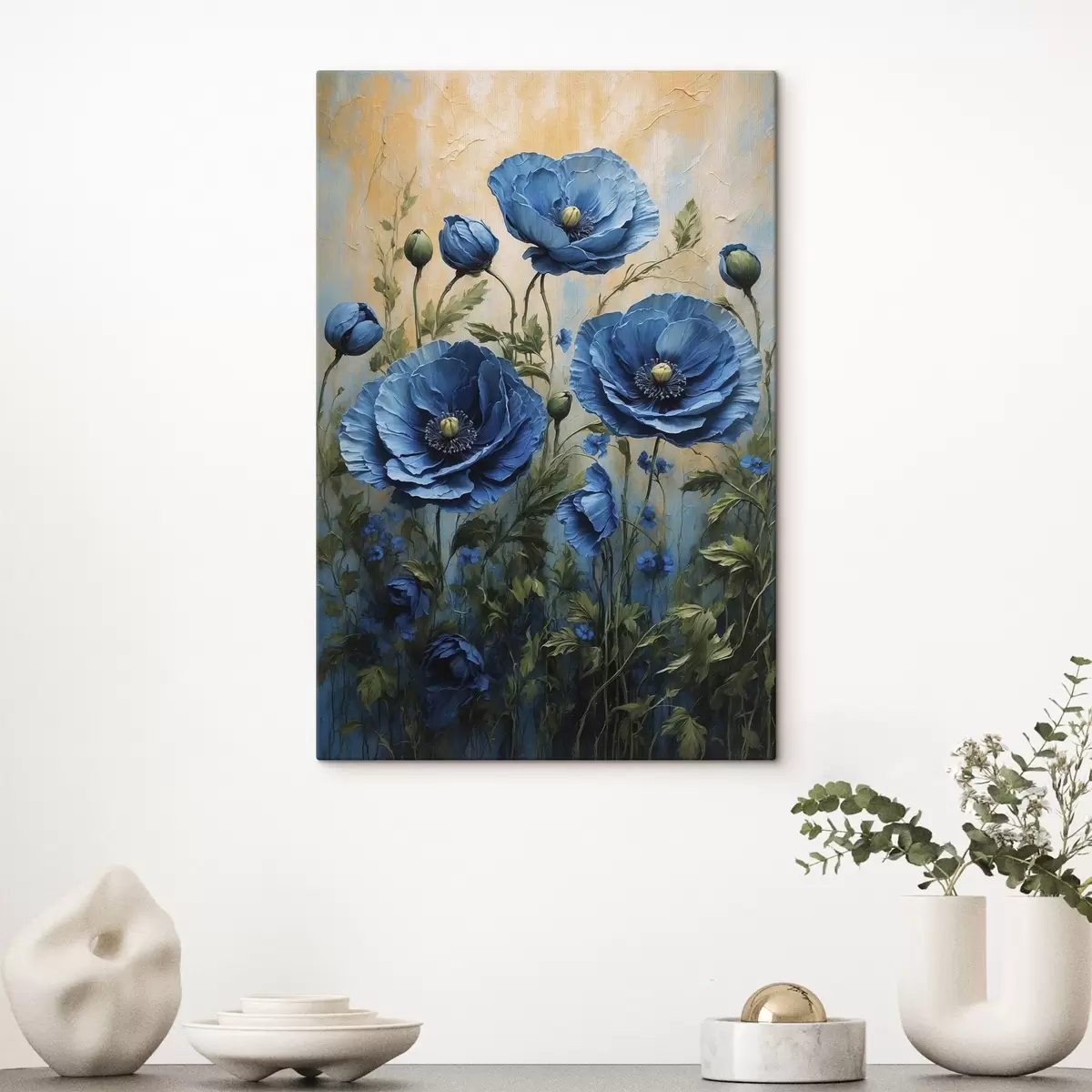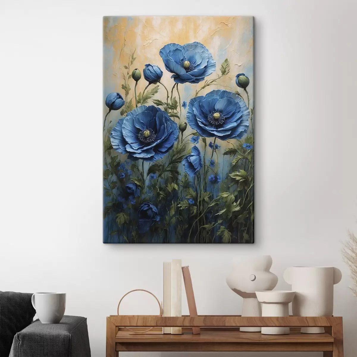 Tableau Grands coquelicots bleus avec bourgeons sur fond clair Nr s45488