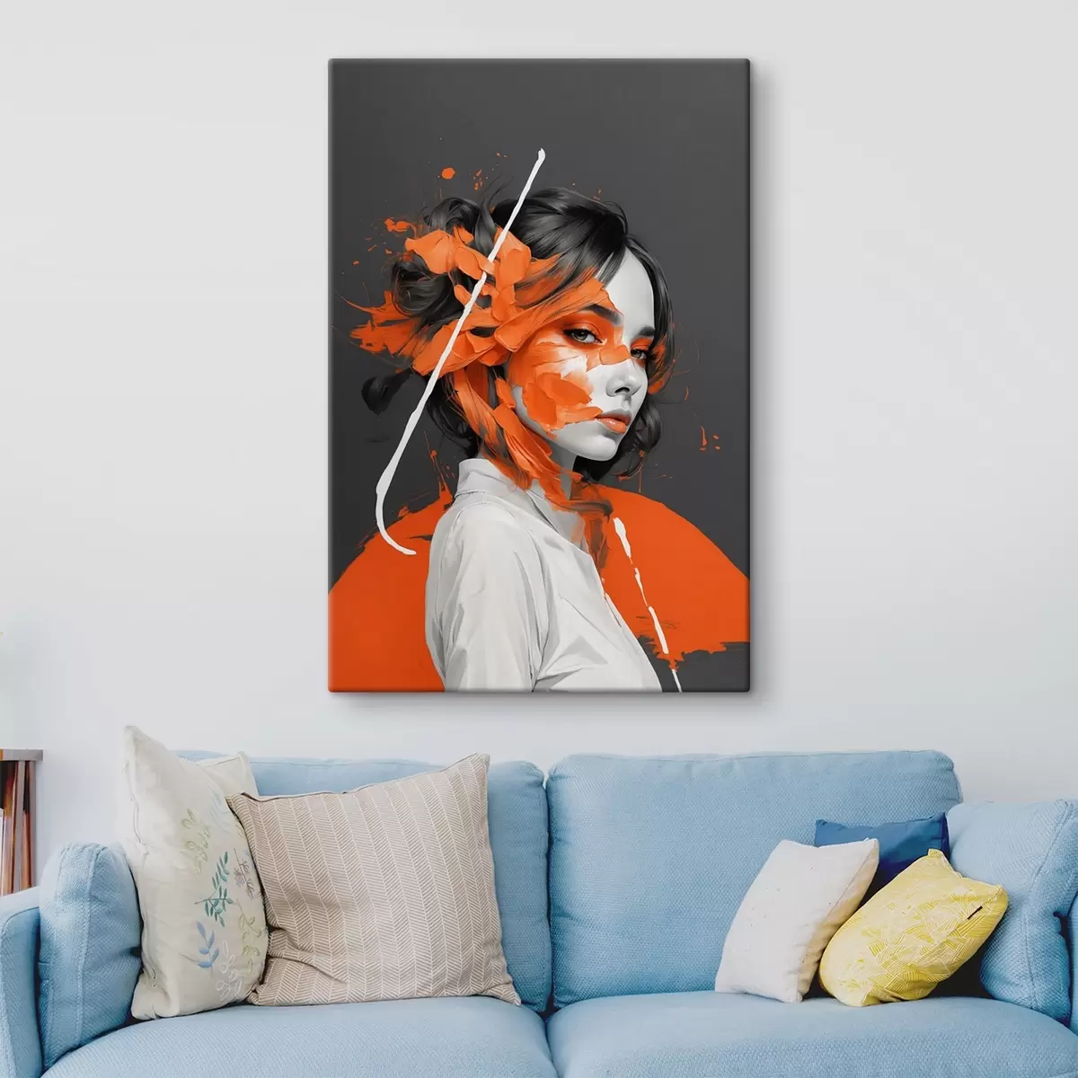 Tableau Portrait d'une femme avec des coups de pinceau orange s45489