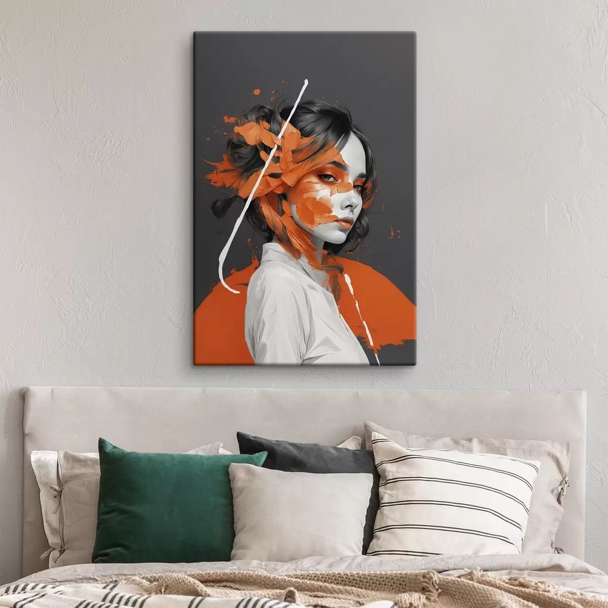Tableau Portrait d'une femme avec des coups de pinceau orange Nr s45489