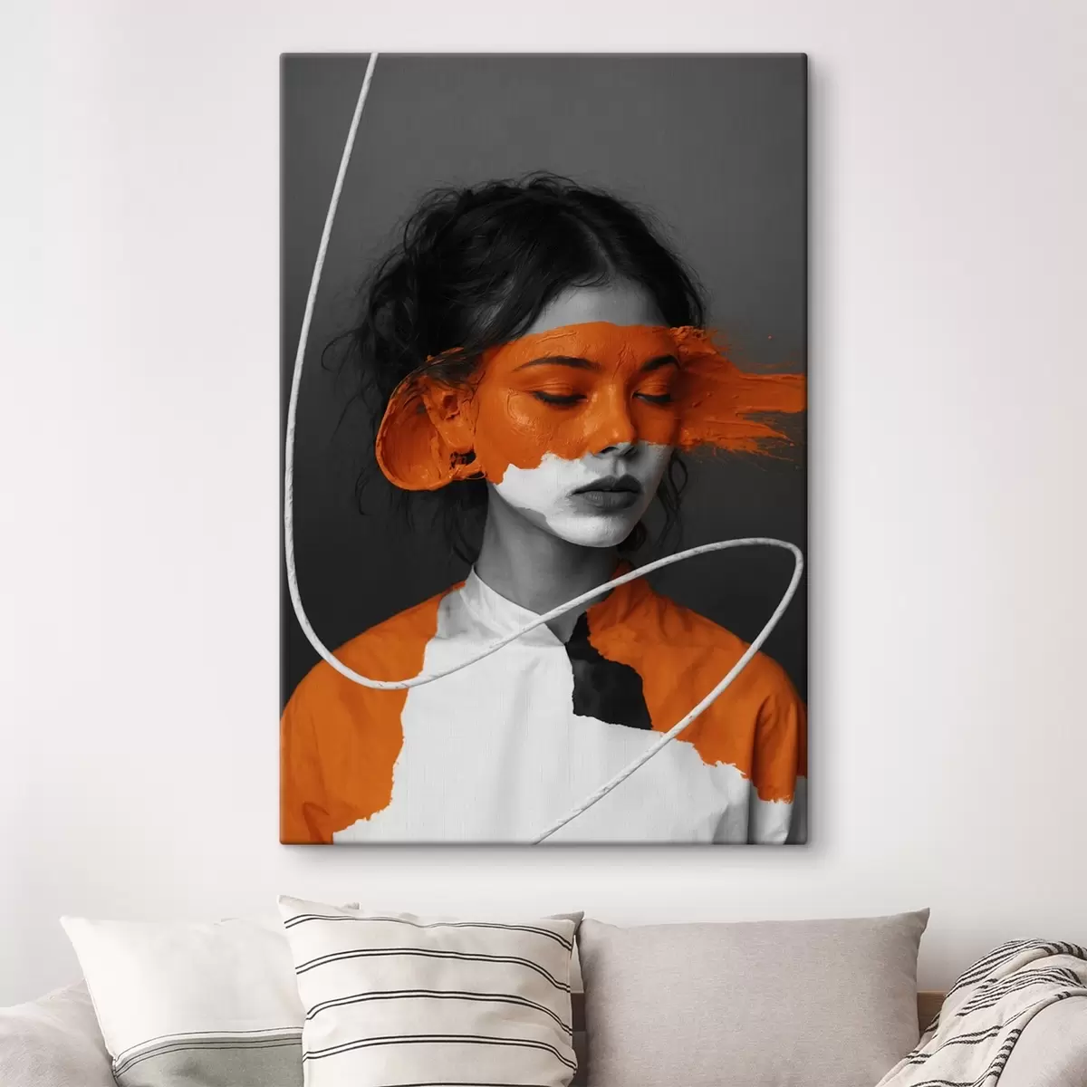 Tableau Portrait d'une fille avec une image abstraite orange Nr s45495