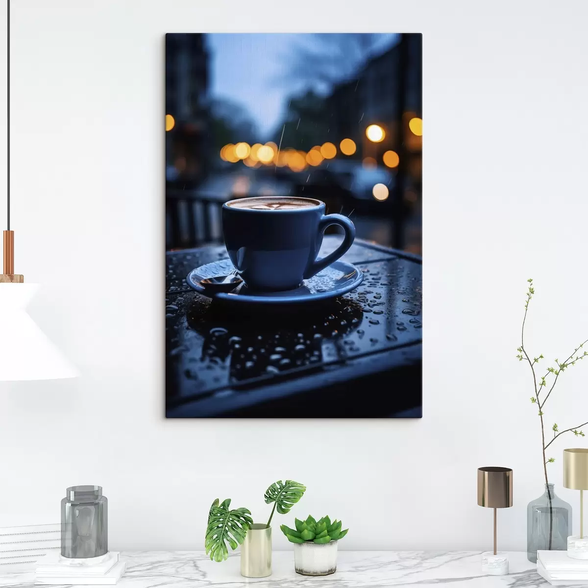 Tableau Une tasse de café sur la table sous la pluie Nr s45497