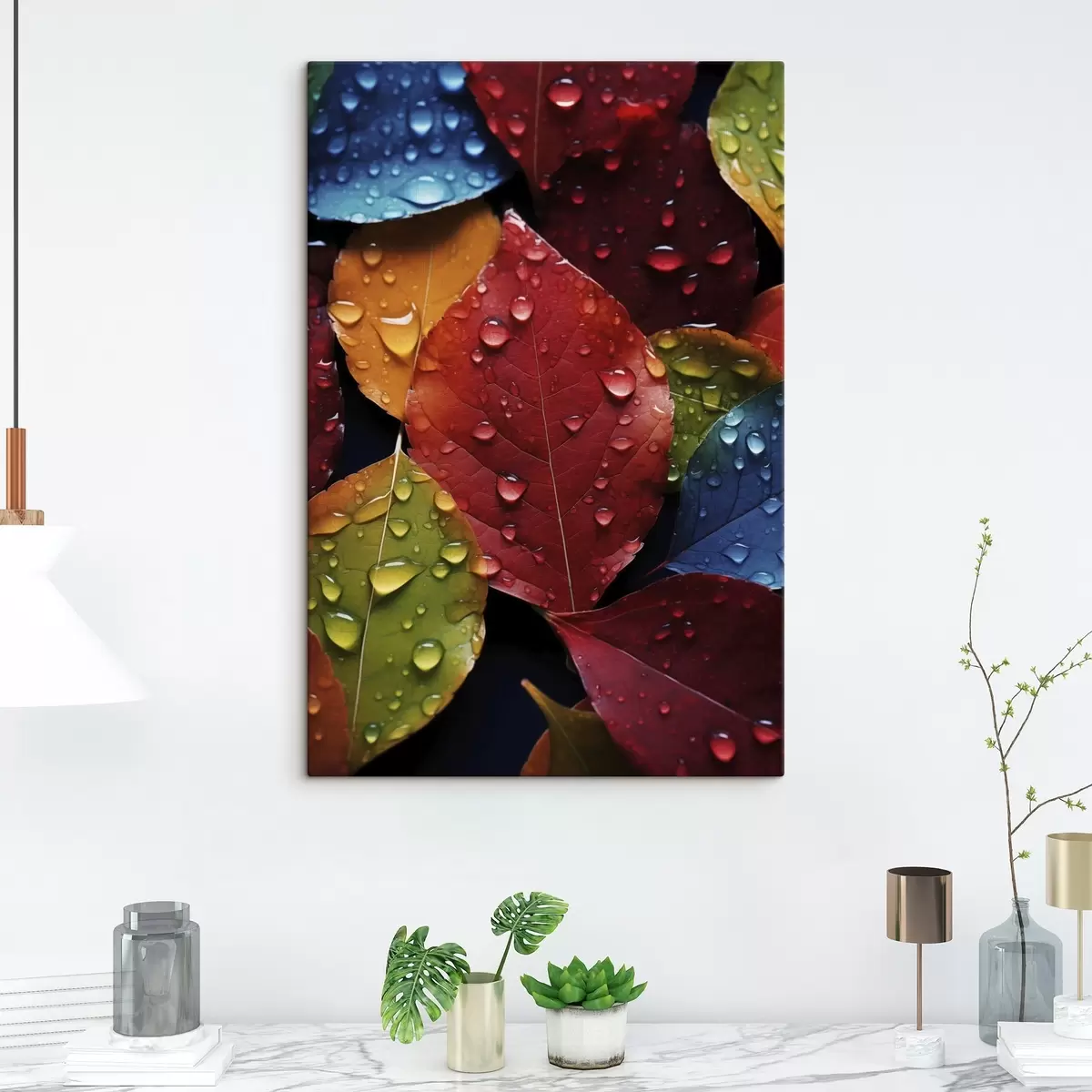 Tableau Feuilles colorées avec des gouttes d'eau Nr s45516