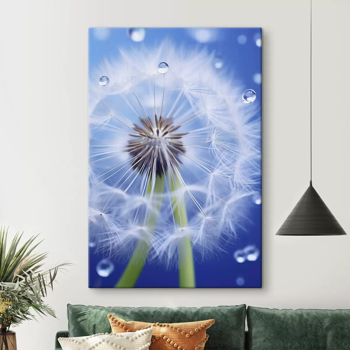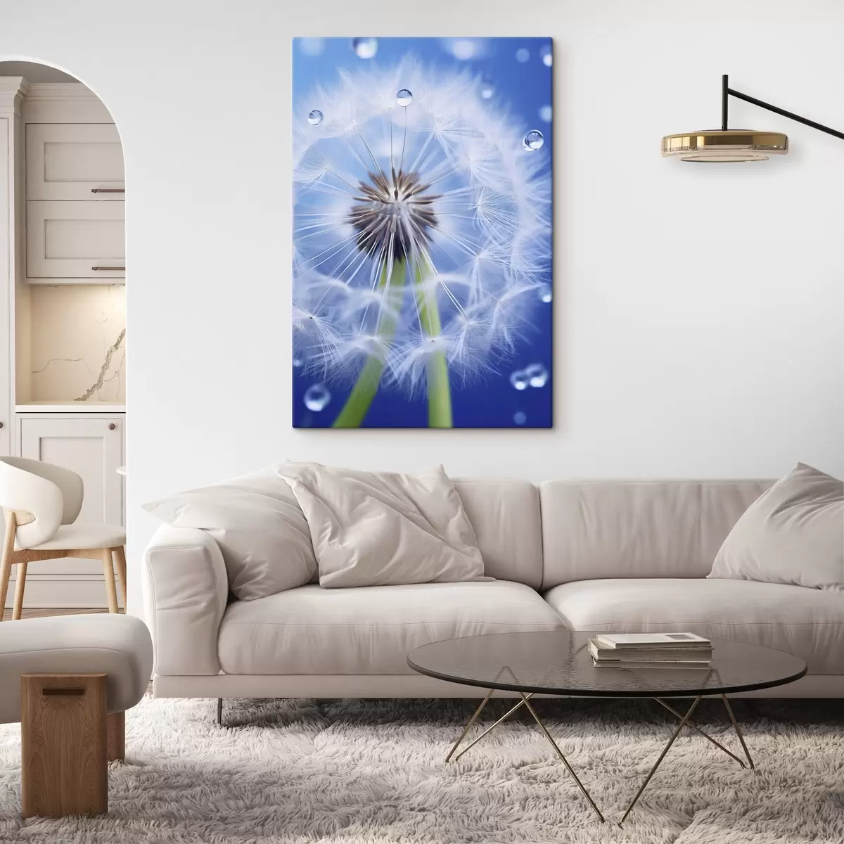 Tableau Macro d'un pissenlit sur fond bleu Nr s45517