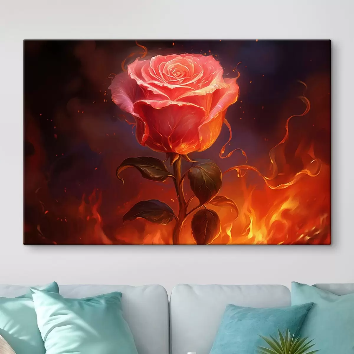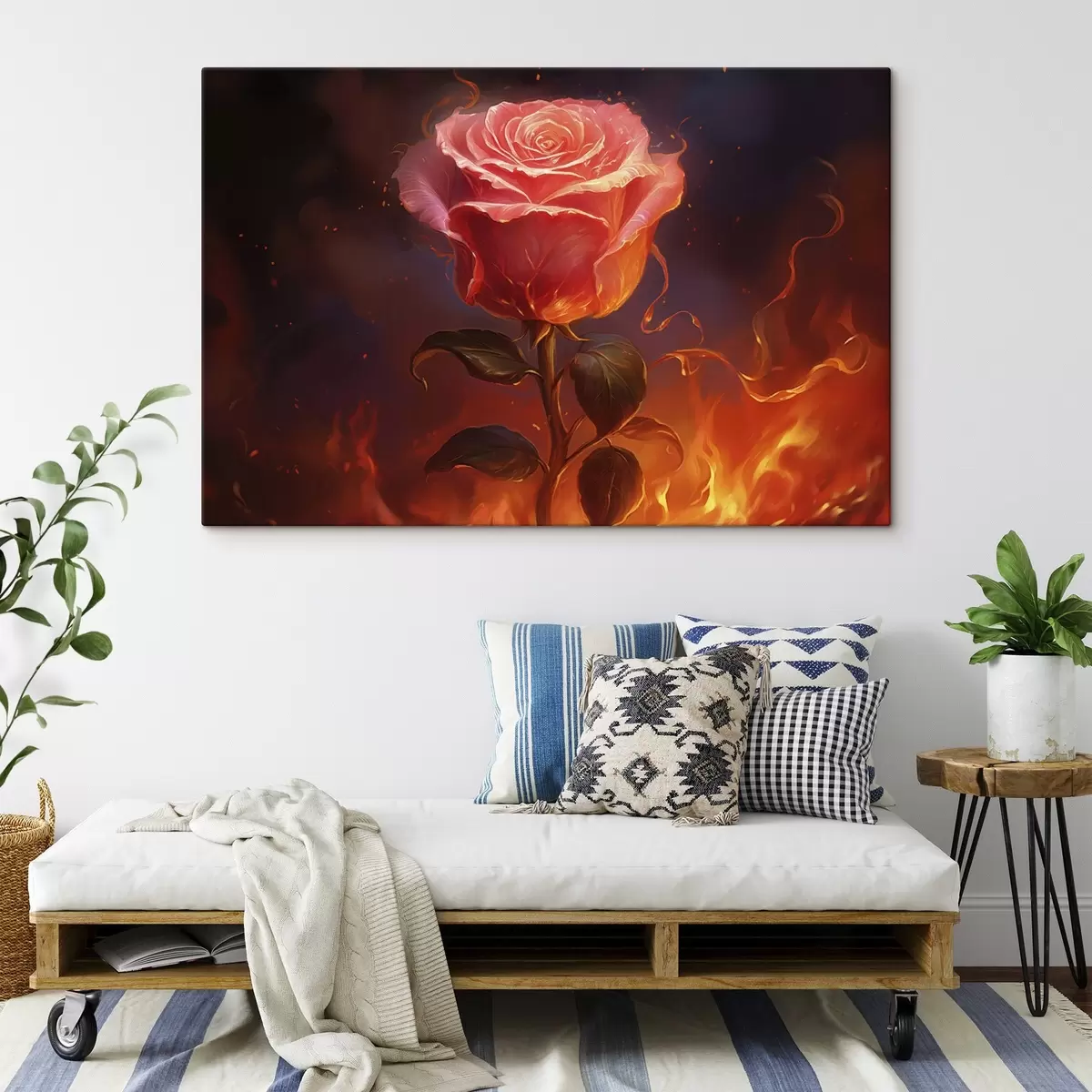 Tableau Rose rouge parmi le feu et les étincelles Nr s45523