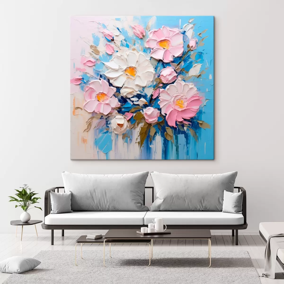 Tableau Composition picturale dans les tons roses et bleus s45538