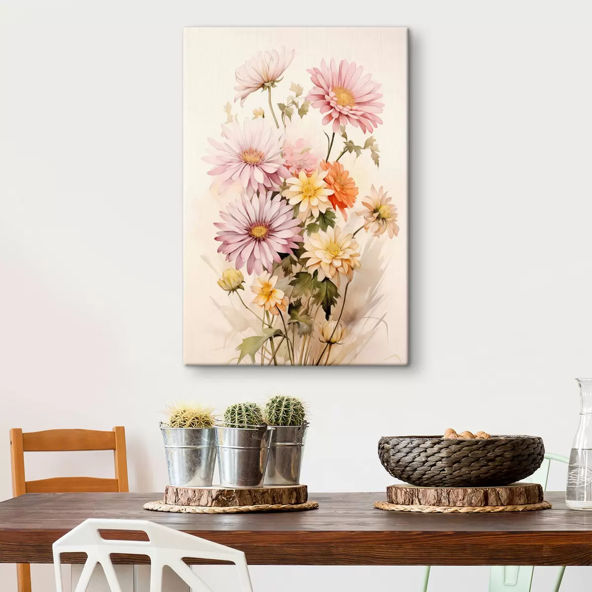 Tableau Bouquet de fleurs colorées, style aquarelle douce, sur fond clair s45559