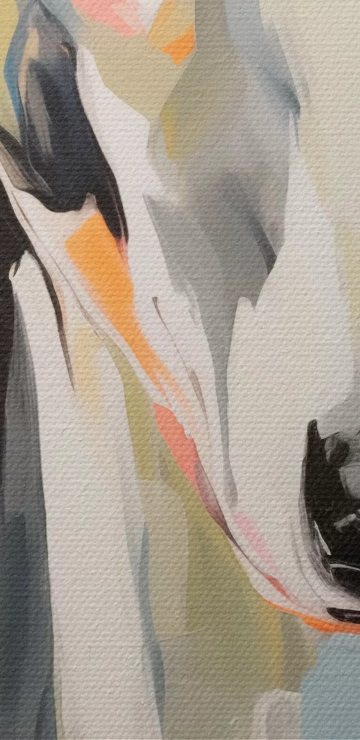Tableau Un lévrier sur un fond de coups de pinceau roses, orange et blancs Nr s45566