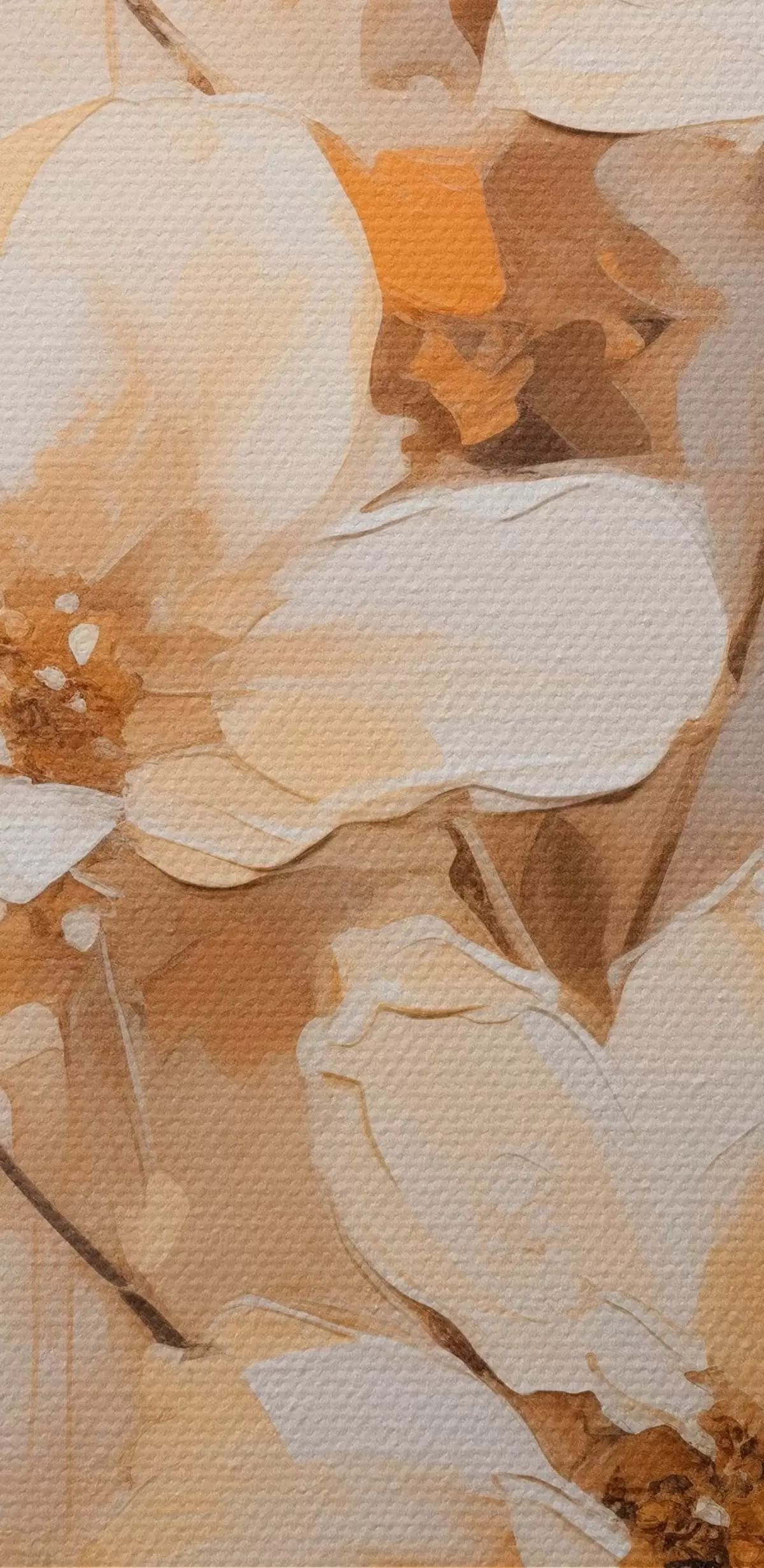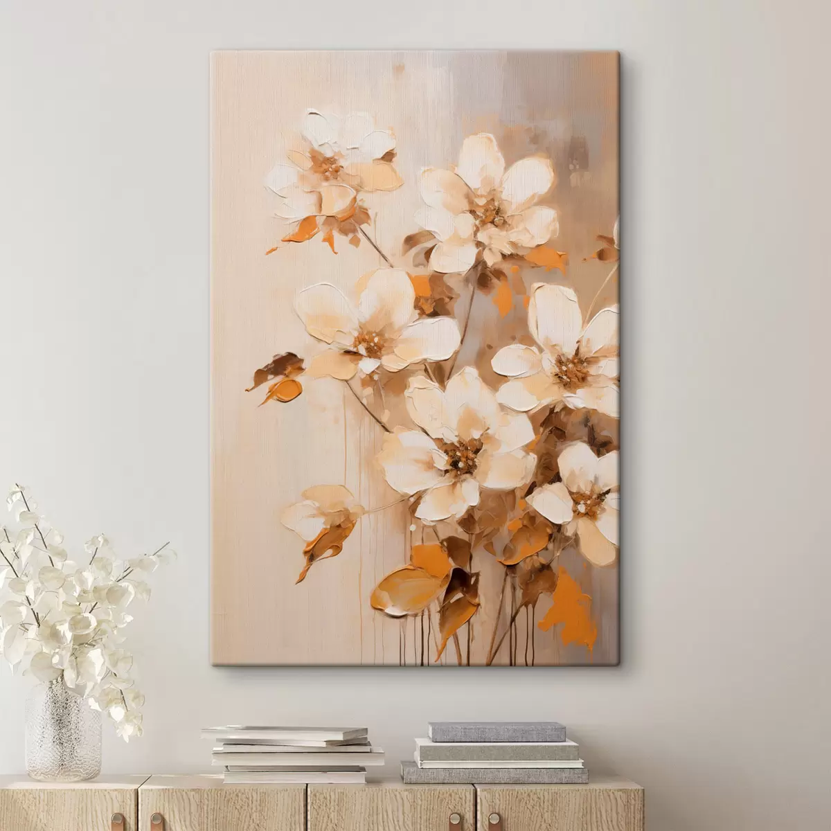 Tableau Fleurs blanches avec feuilles orange, coups de pinceau délicats, arrangement floral, art botanique  s45574