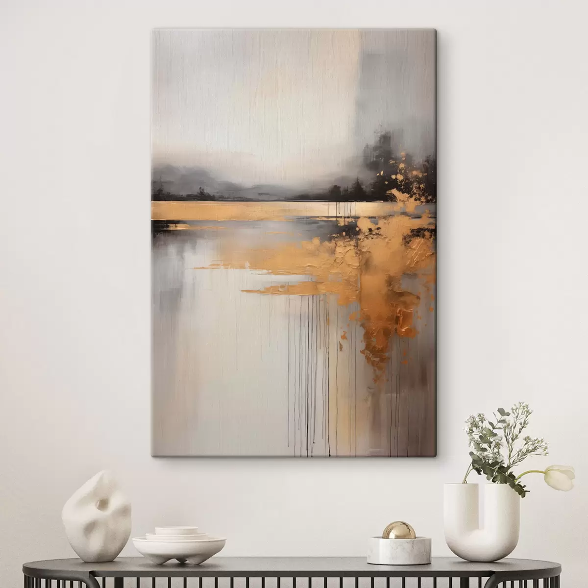 Tableau Paysage abstrait texturé avec une rivière et des arbres sombres en arrière-plan, le ciel est nuageux Nr s45576