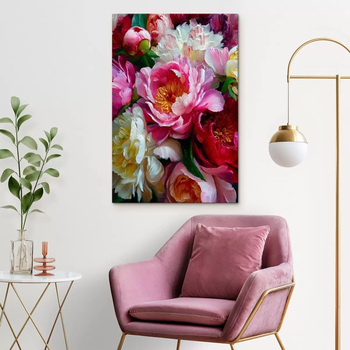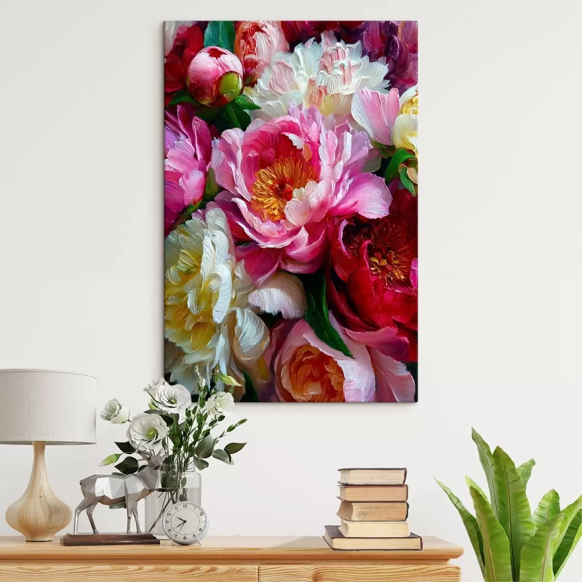Tableau Pivoines luxuriantes en technique d'empâtement s45595