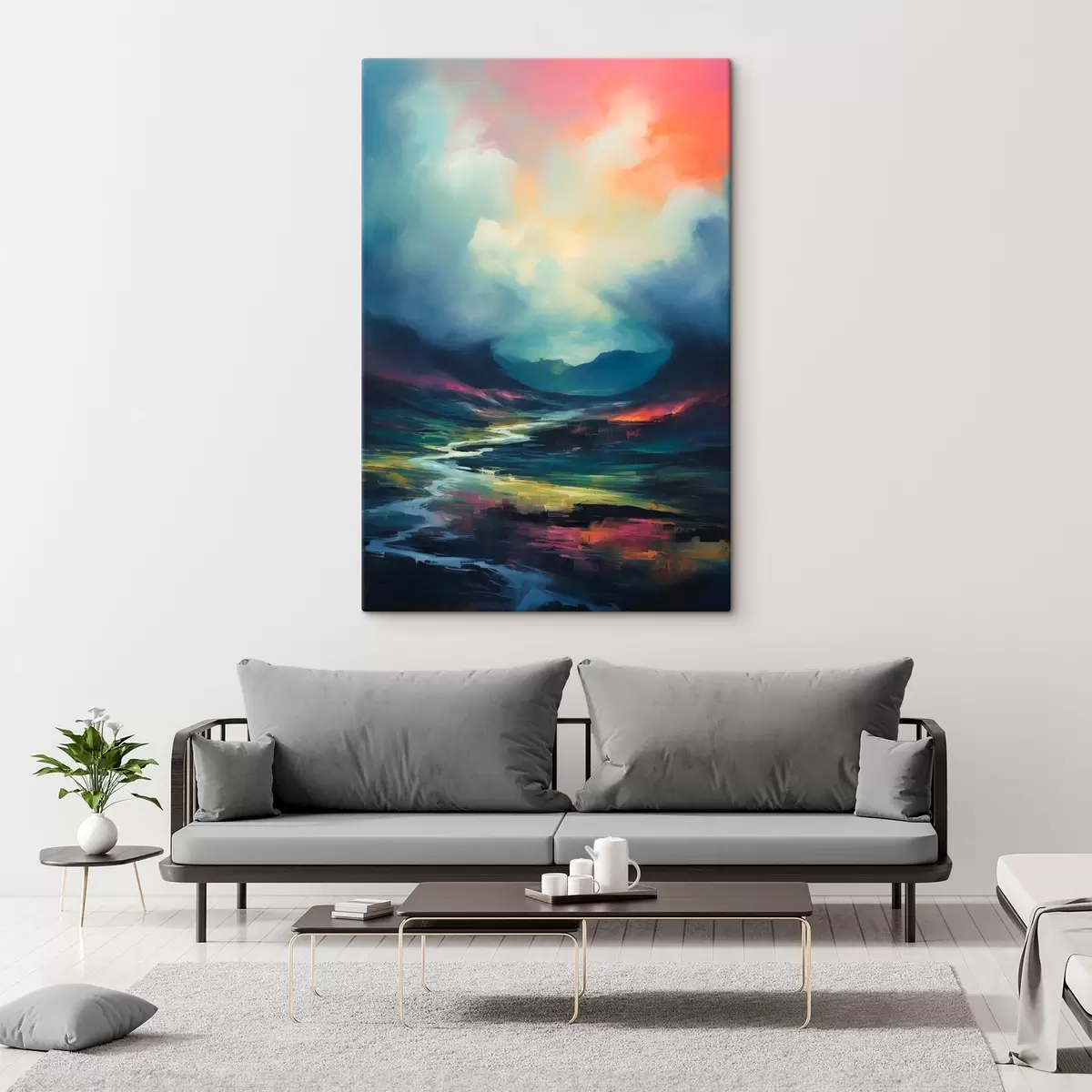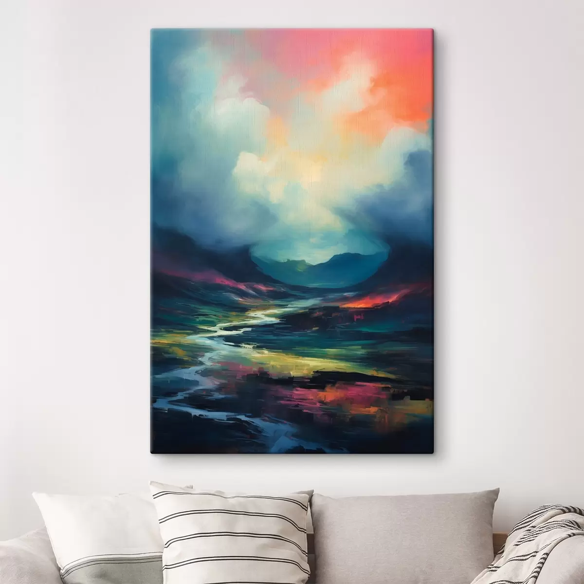 Tableau Paysage abstrait avec une rivière et des montagnes s45627