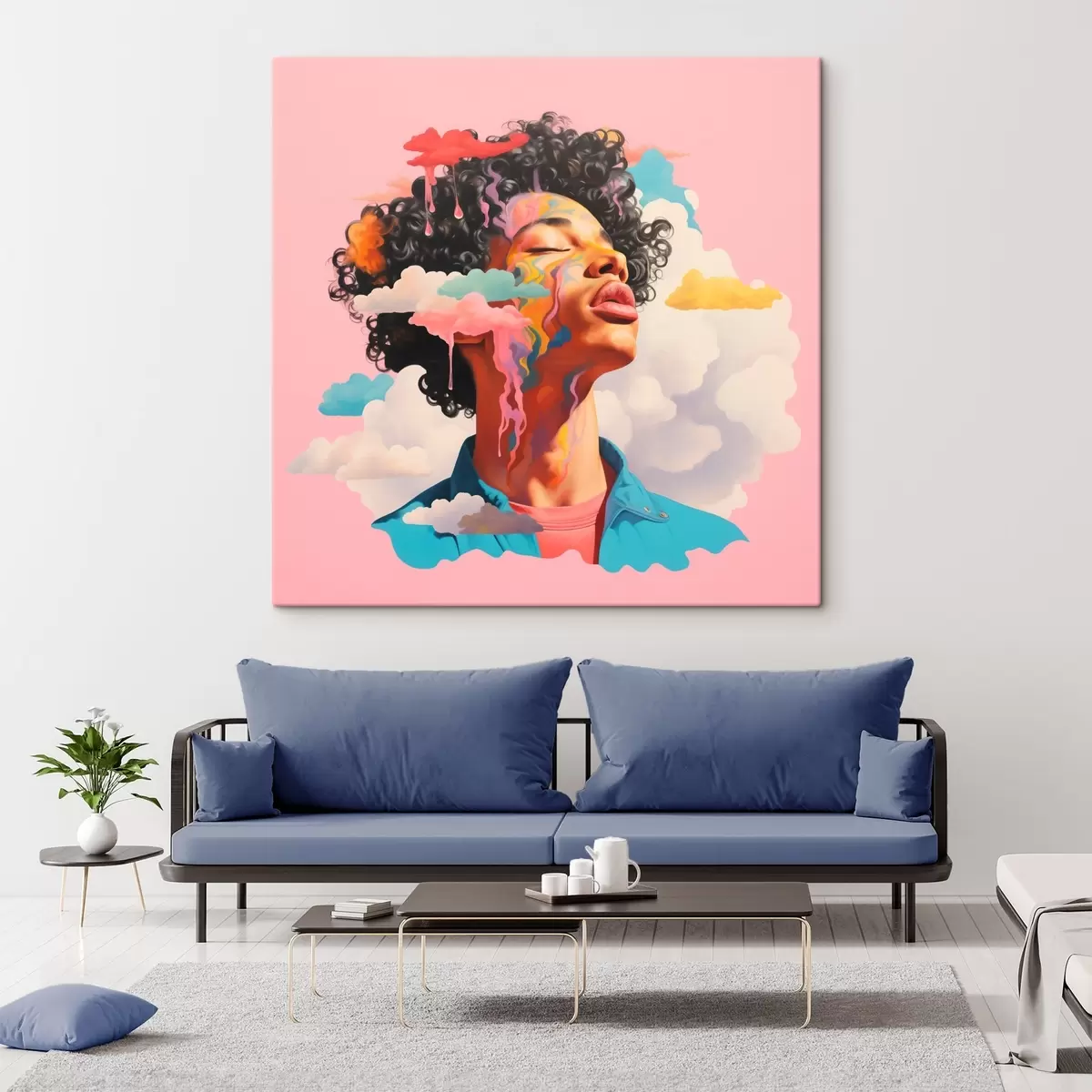 Tableau Rêveur dans les nuages en style aquarelle s45636