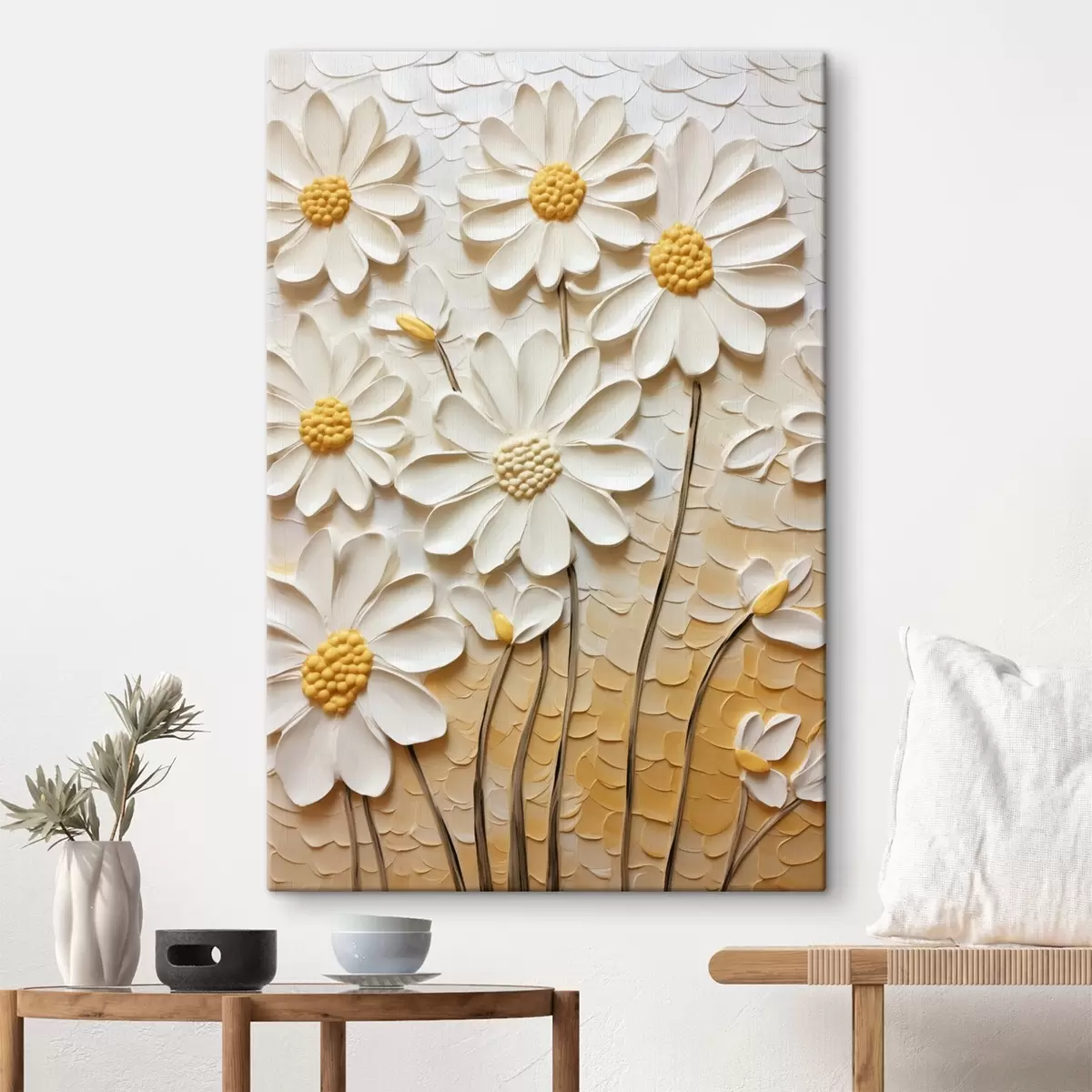 Tableau Marguerites en style empâté : pétales blancs s45647