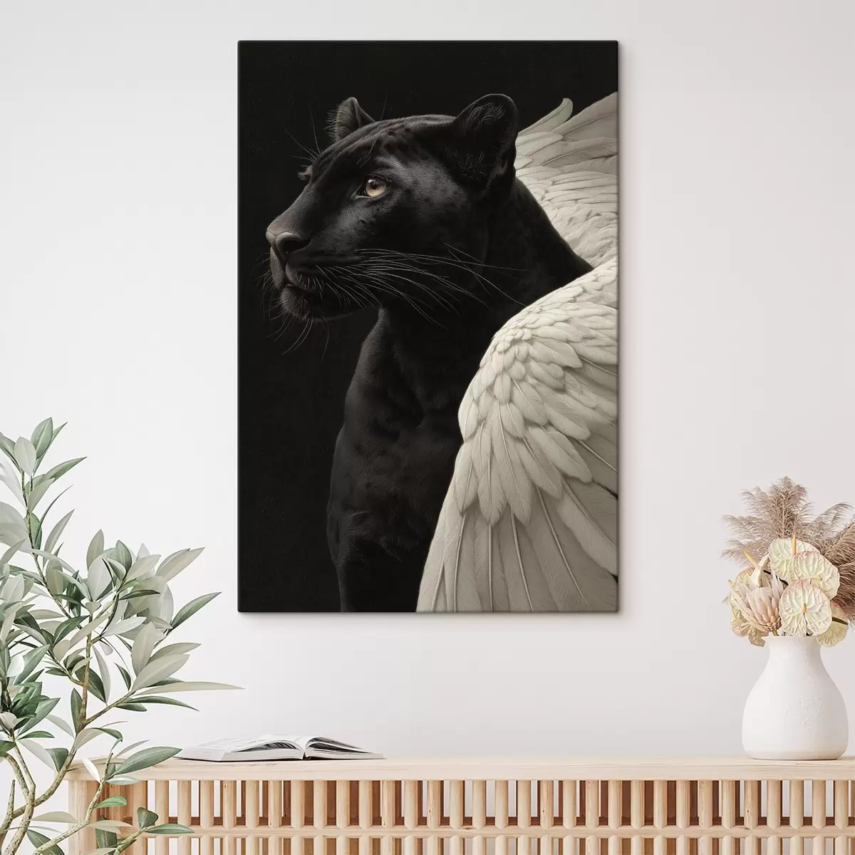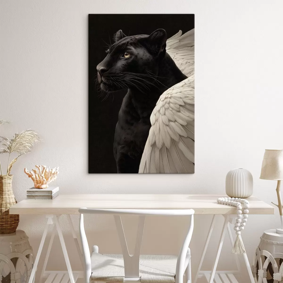 Tableau Panthère noire avec ailes dans un style fantastique s45653