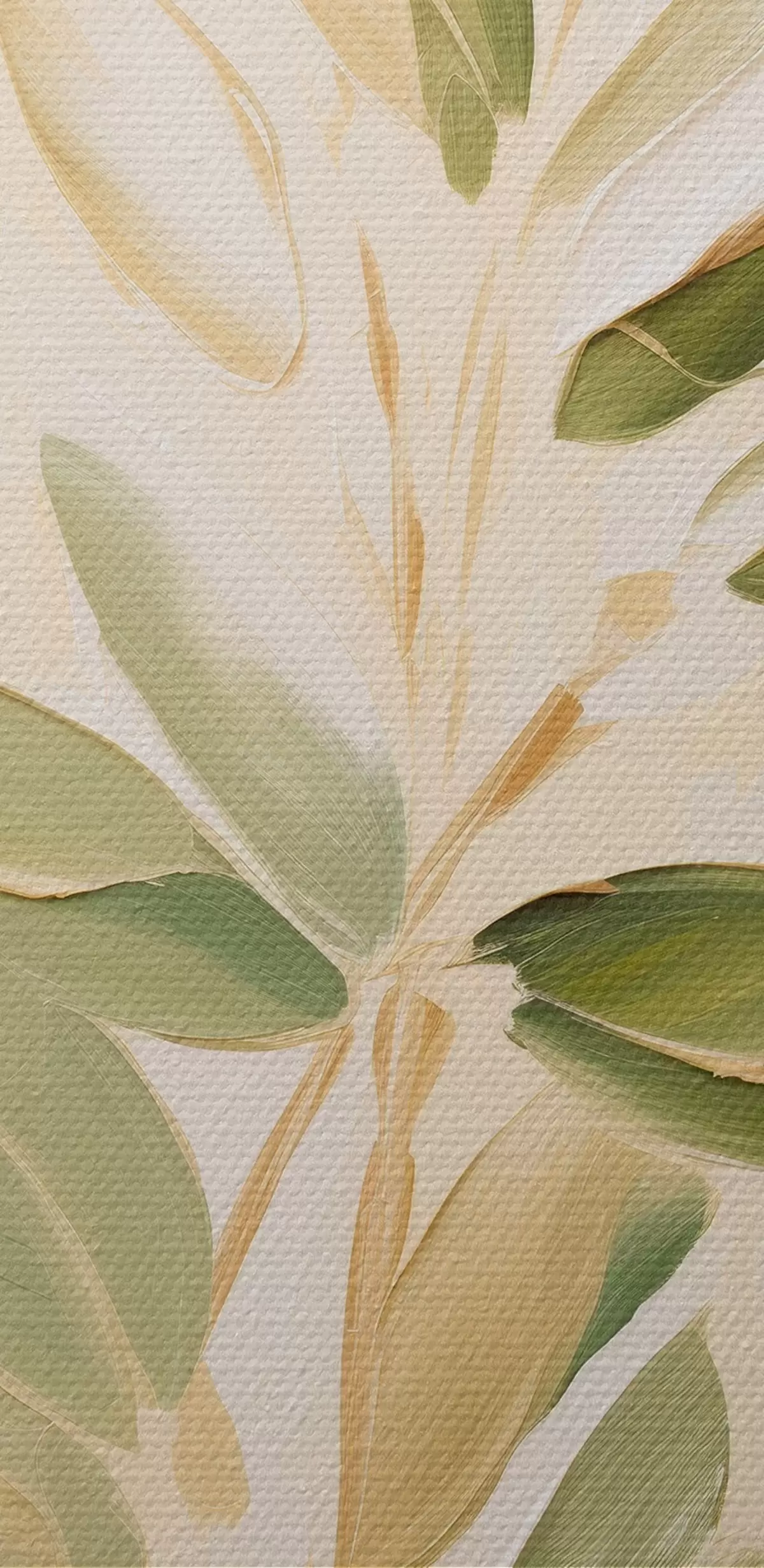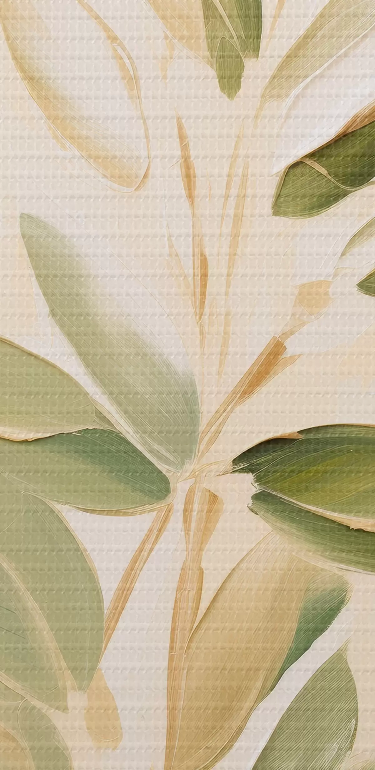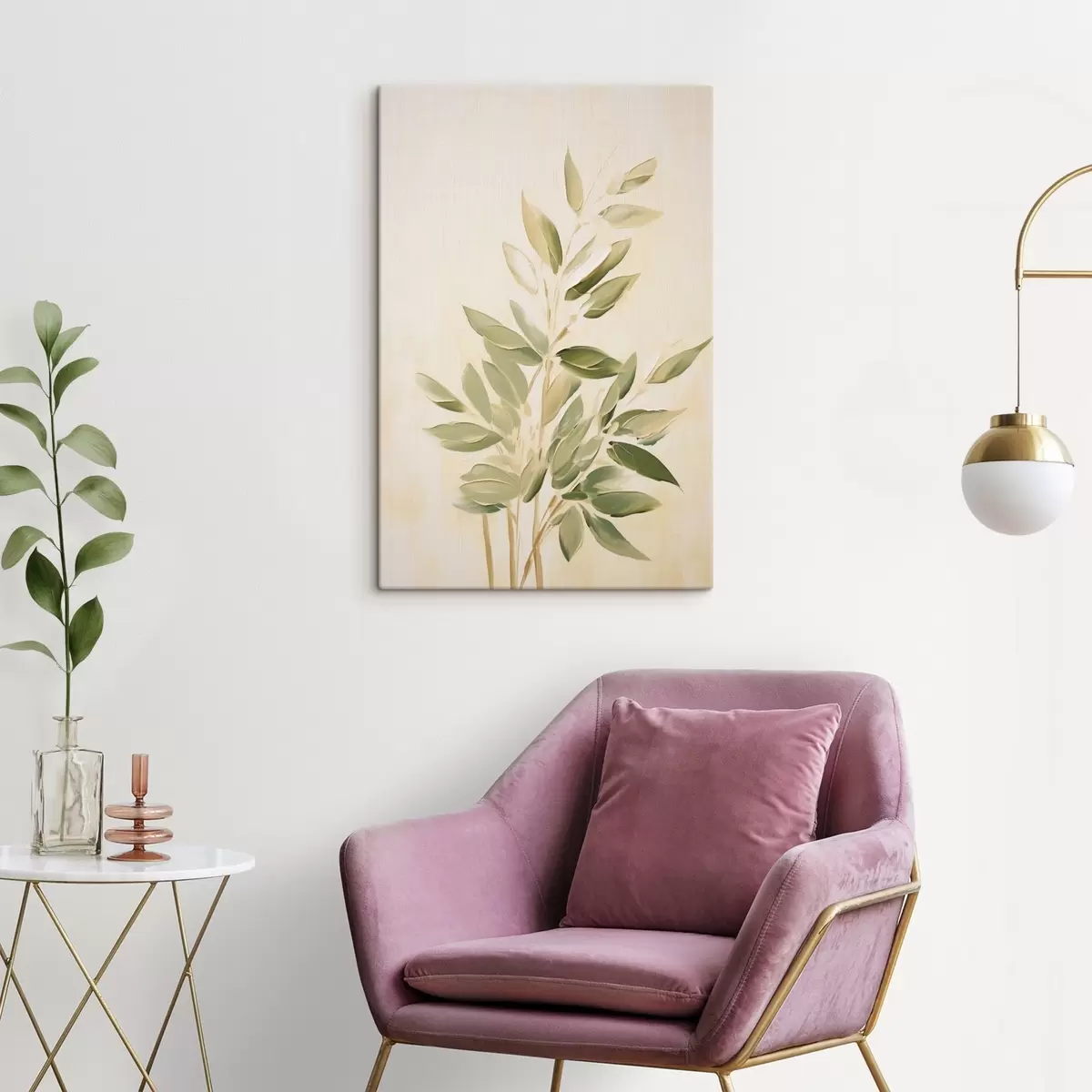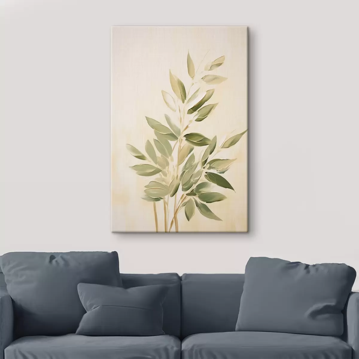 Tableau Branche avec des feuilles vertes sur un fond beige clair Nr s45689