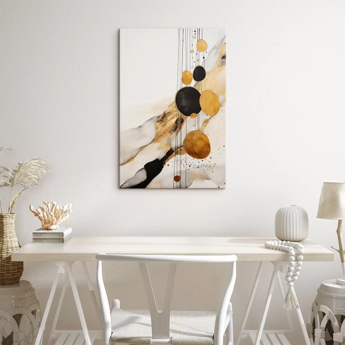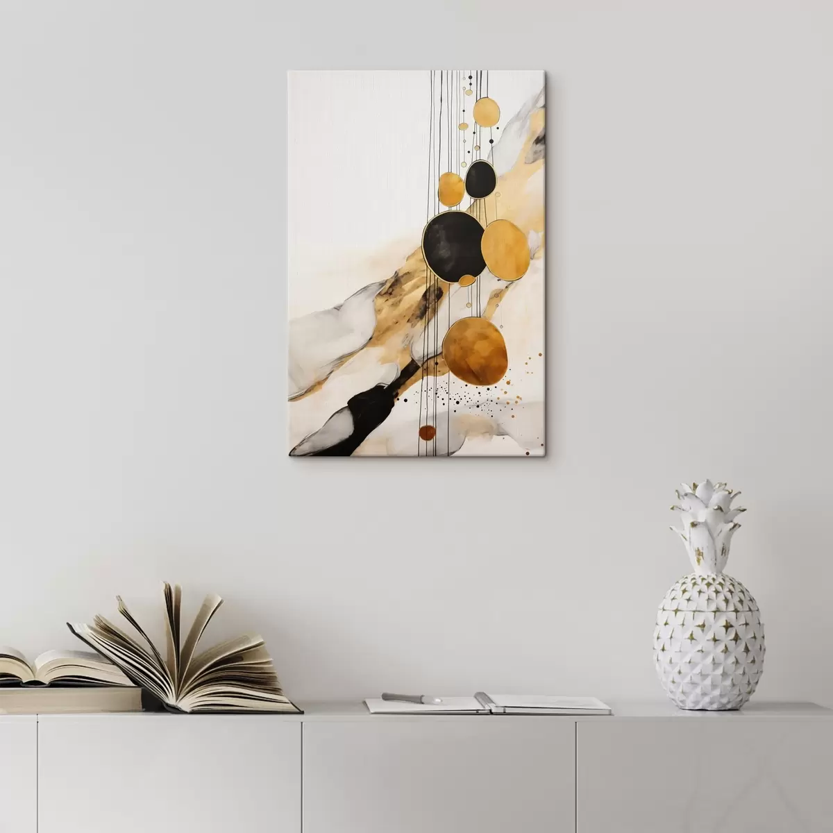 Tableau Cercles abstraits orange et noirs sur fond clair Nr s45693