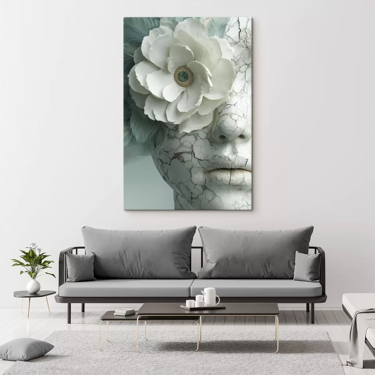 Tableau visage en marbre d'une fille avec une fleur s45709