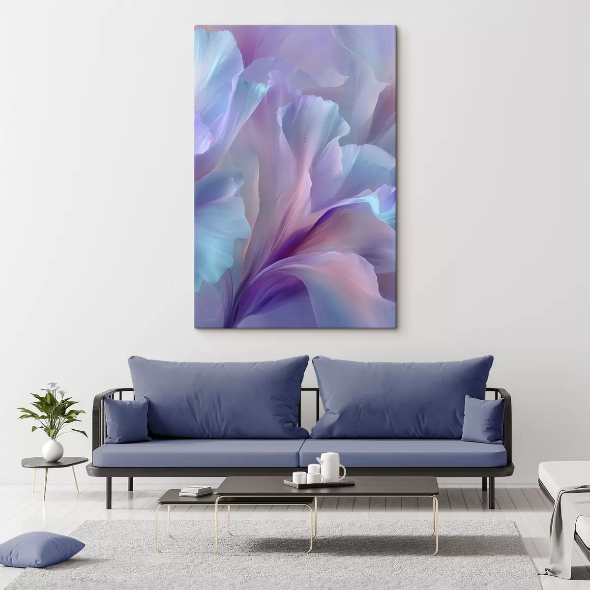 Tableau une fleur fantaisiste délicate aux pétales dans les tons violet, bleu et rose. Nr s45711