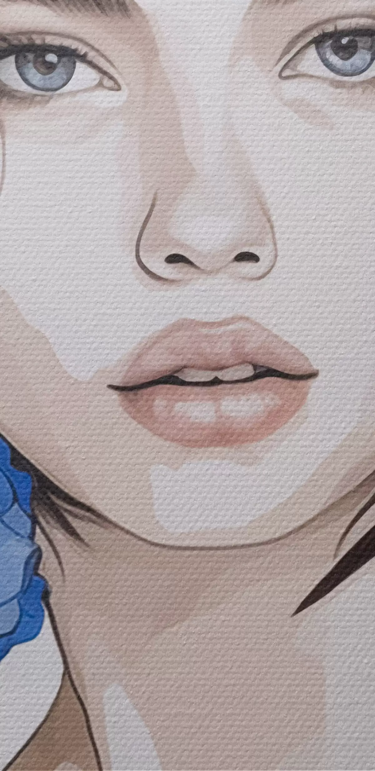 Tableau Portrait d'une jeune fille avec des fleurs bleues s45756